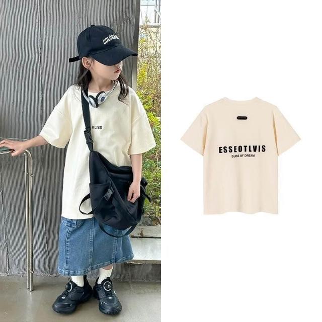 童裝 女童 兒童 短袖 女童短袖T恤夏季新款兒童寬鬆中長款上衣t大童半袖打底衫夏裝 女童短袖 上衣 夏裝 中大童 T恤