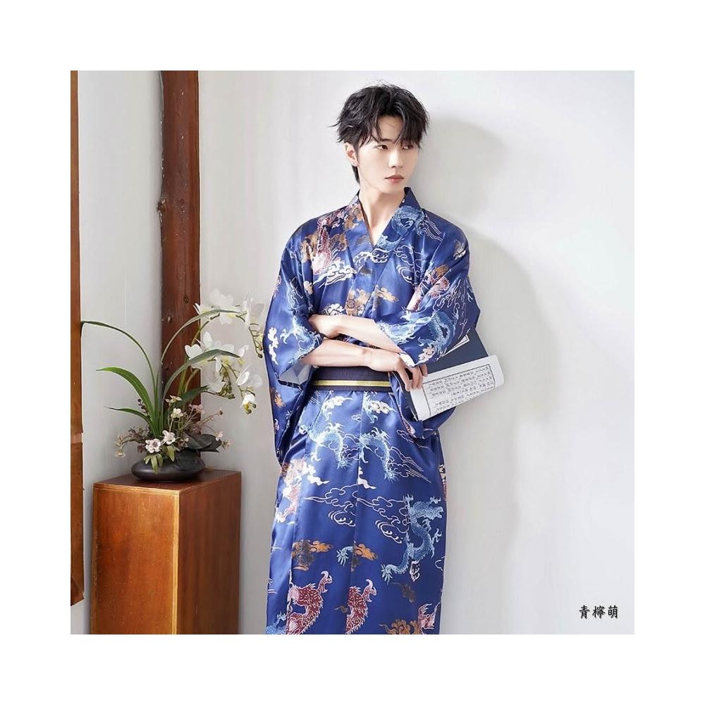 日本和服 男浴衣 男和服 日系和風浴衣古風 和服男 男士浴衣 武士服 劍道黑色順條紋傳統夏日祭花火大會和服 日本睡袍