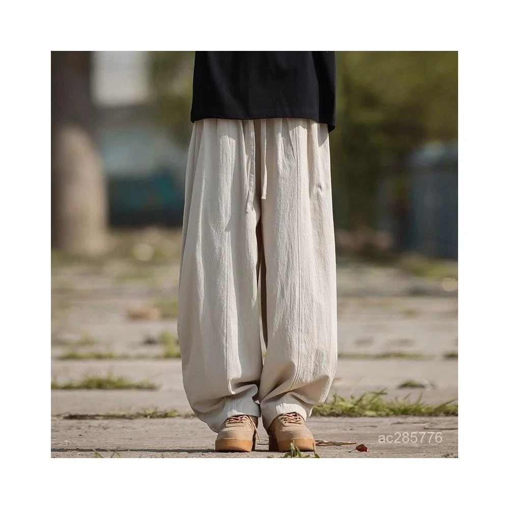 夏季棉麻褲子薄款休閒褲運動男士直筒休閒長褲彎刀寬鬆闊腿亞麻 I7N7