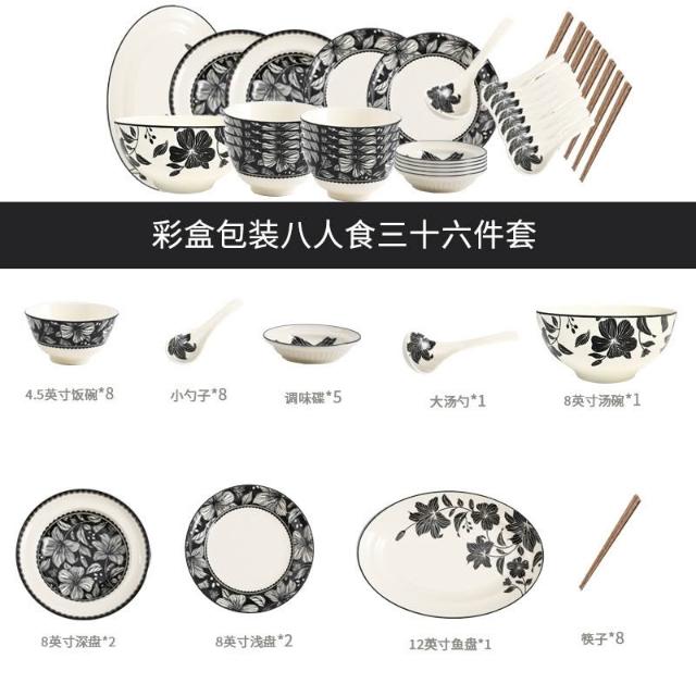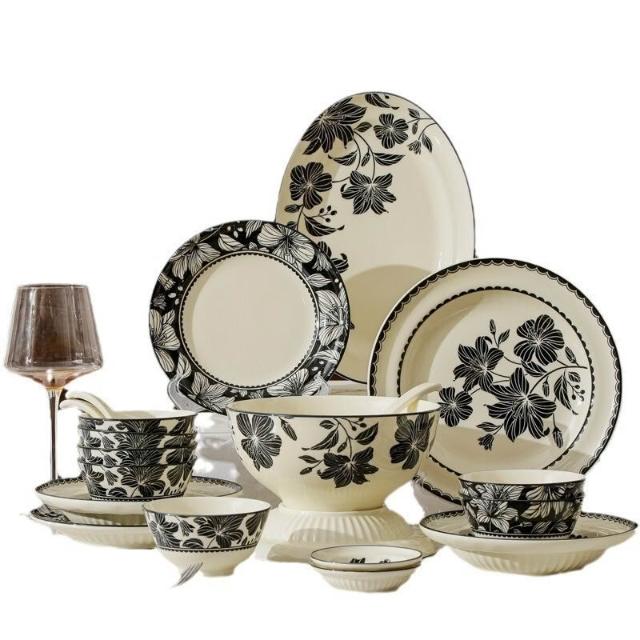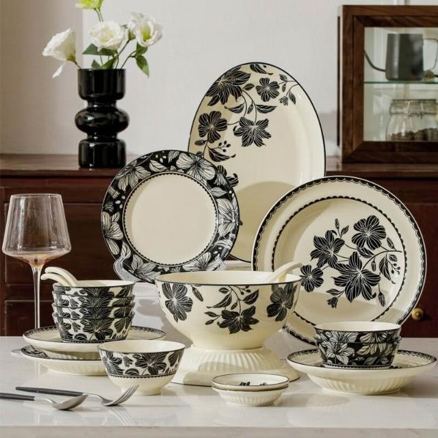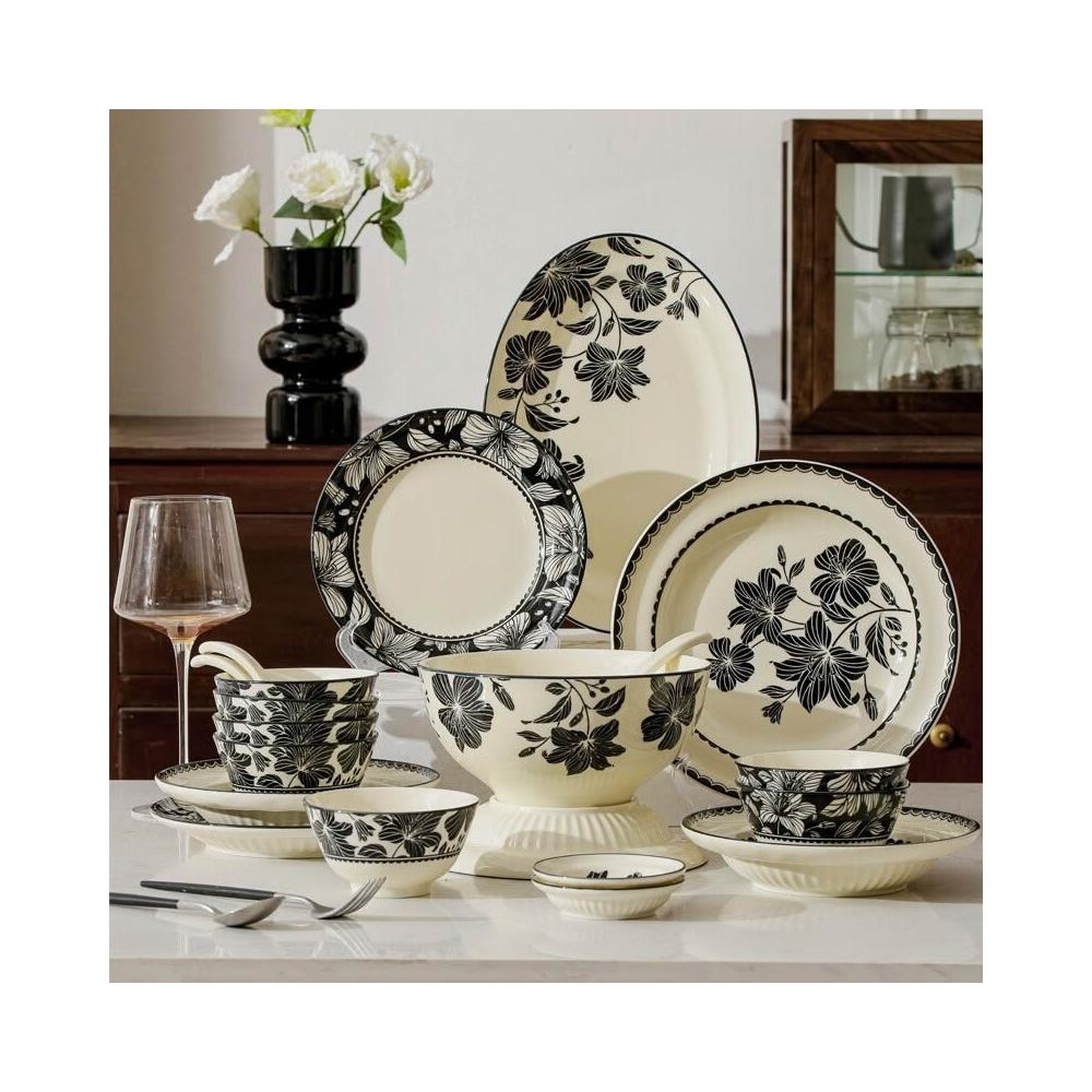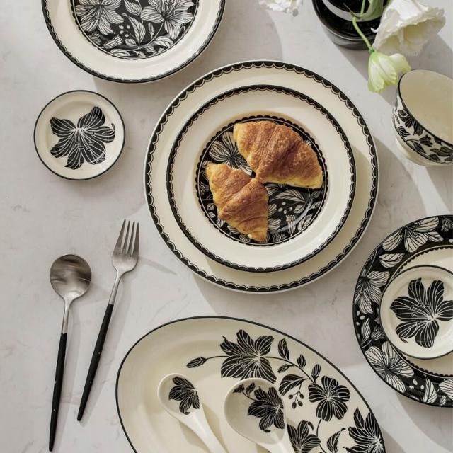 碗具套裝釉下彩餐具碗碟盤家用陶瓷碗湯碗高顏值盤子碗筷全套餐桌托盤置物盤收納盤簡約風甜品盤水果盤菜盤牛排盤點心碟餐具