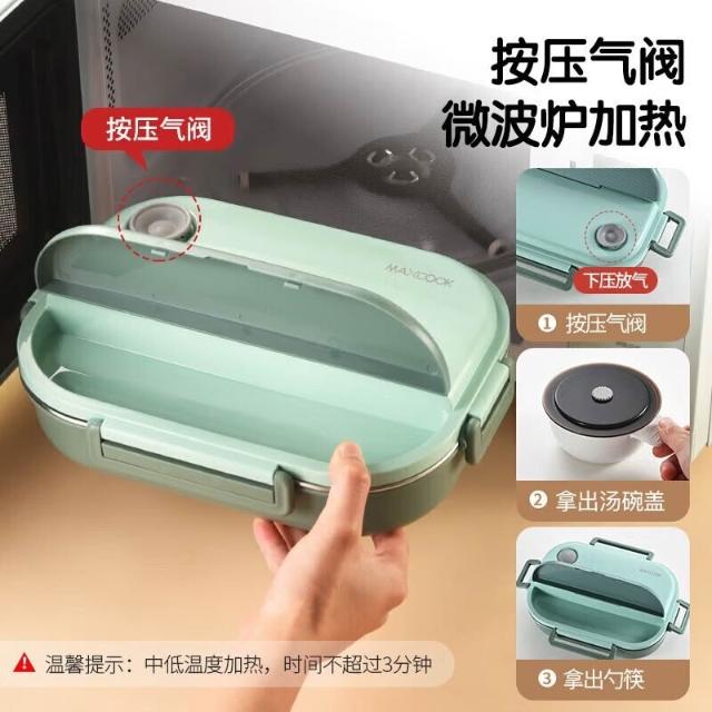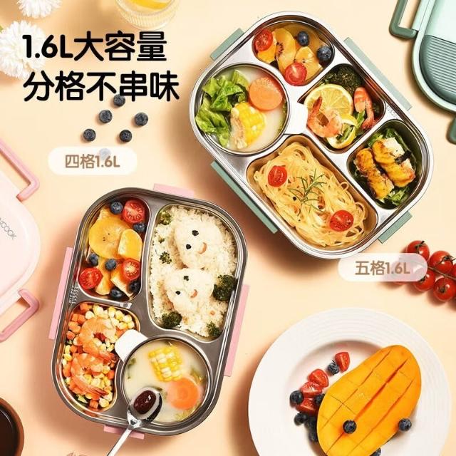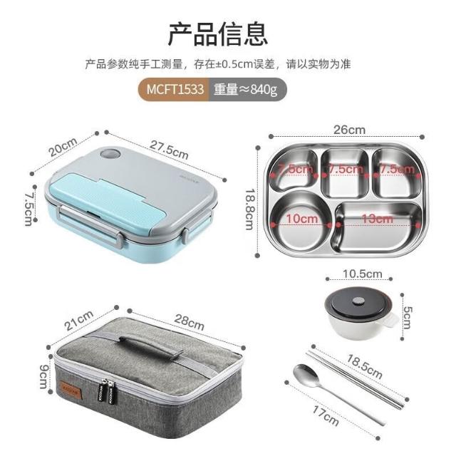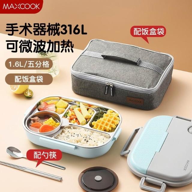 美廚316L不銹鋼飯盒微波爐飯盒5格保溫學生飯盒配餐具袋子藍廚房用具廚房用品不鏽鋼家用廚具環保餐具居家用品