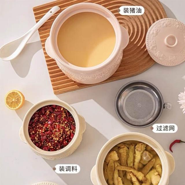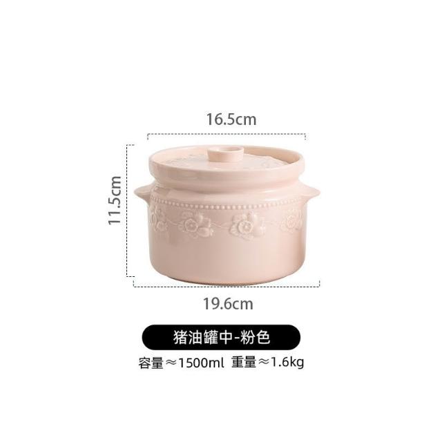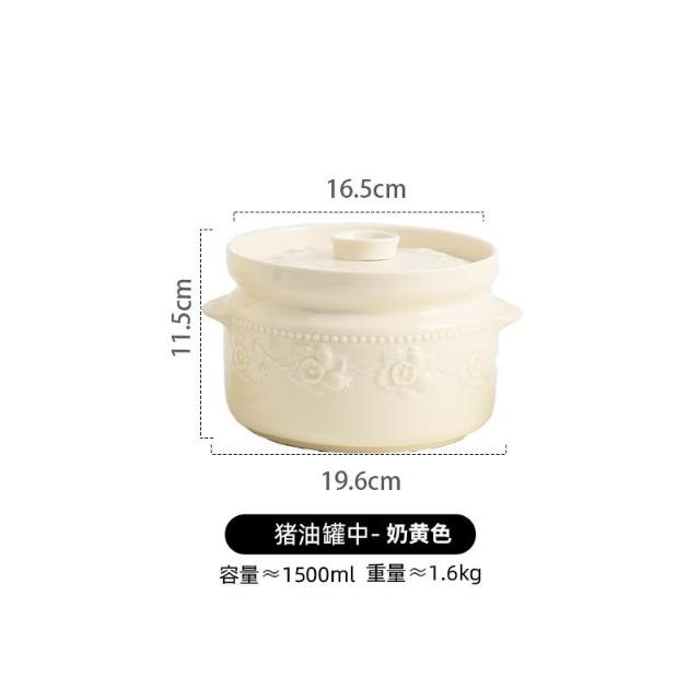 浮雕陶瓷豬油罐耐高溫辣椒油罐帶蓋廚房裝葷油罐調料罐收納罐調料收納廚房收納調味罐調味瓶調味料罐香料罐居家收納