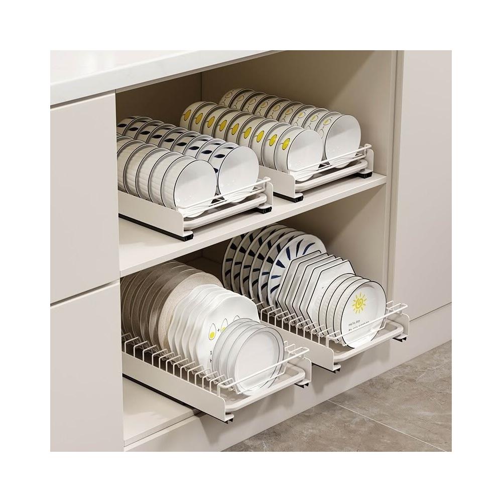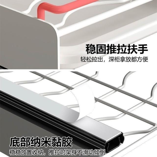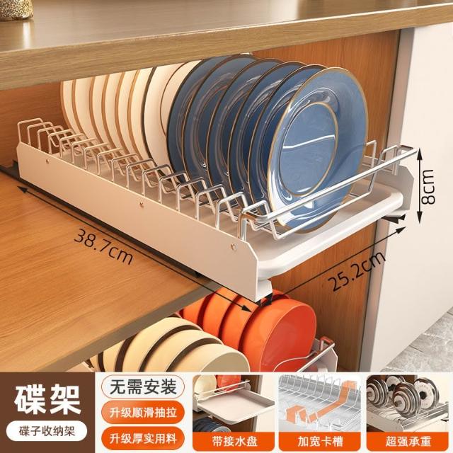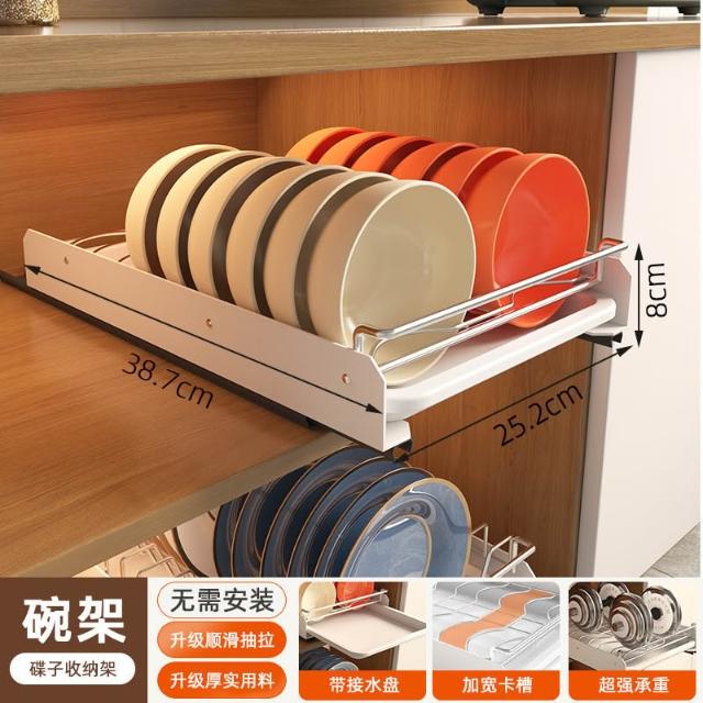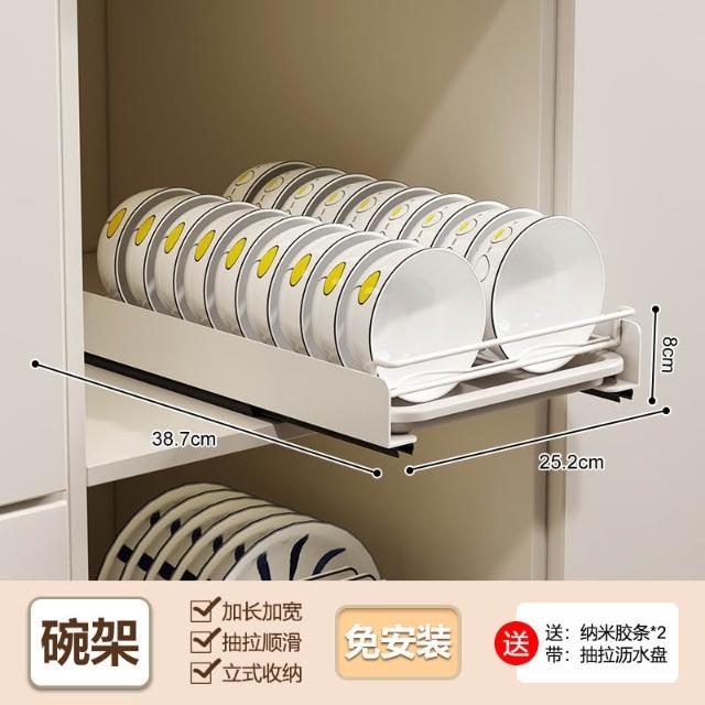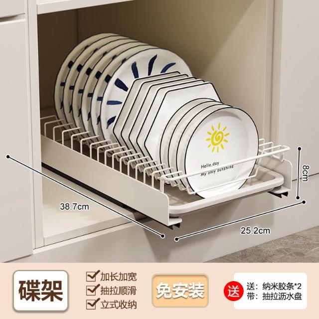 廚房抽拉碗碟收納架櫥柜免打孔碗盤拉籃抽屜式碗架盤子瀝水置物架廚具收納廚房收納廚房置物架
