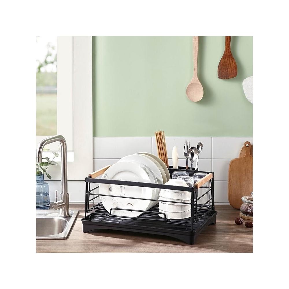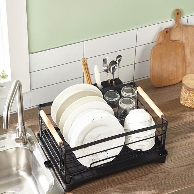 廚房鋼木結合不銹鋼水槽碗碟架瀝水架餐具瀝水碗碟收納架居家生活用品廚房收納浴室收納居家收納置物架收納架儲物架