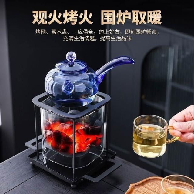 觀火碳爐耐高溫玻璃烤煮兩用碳爐暖手爐烤火爐逍遙壺煮茶套裝創意高端 好物