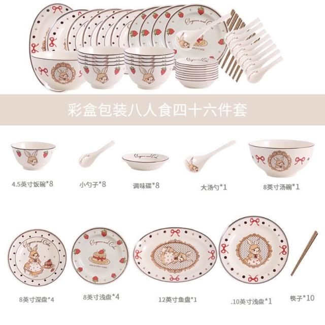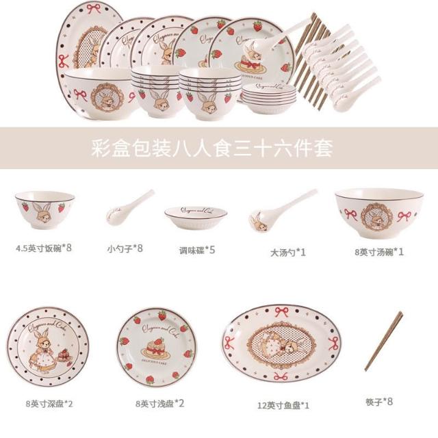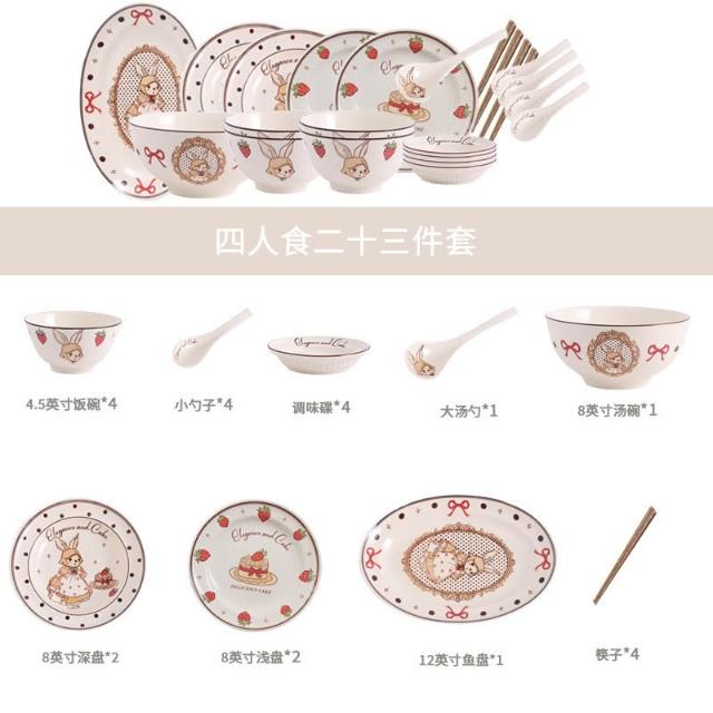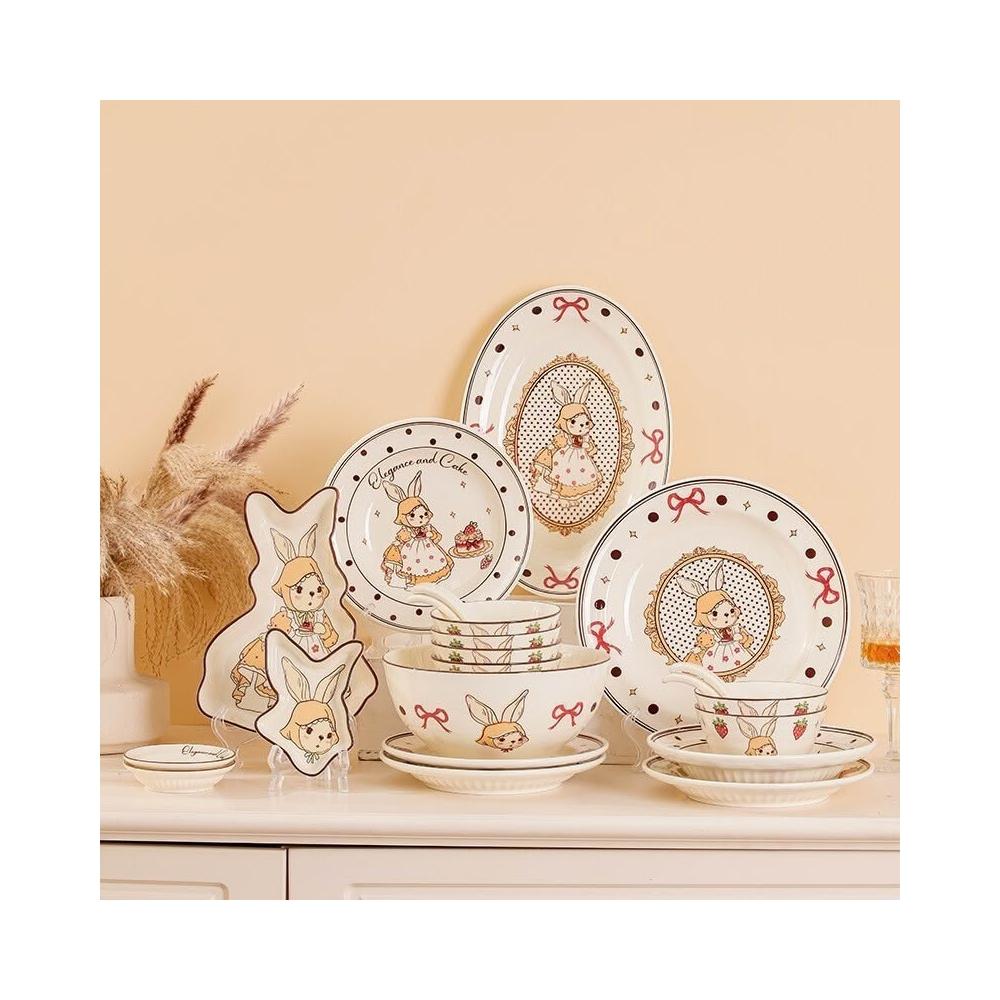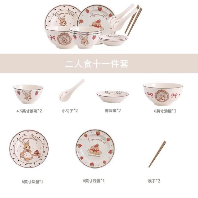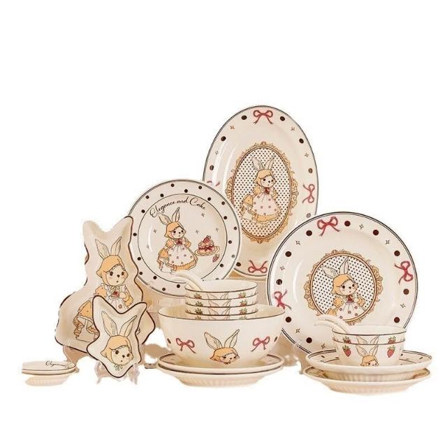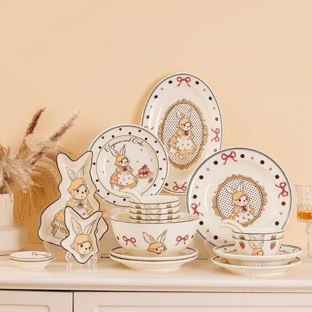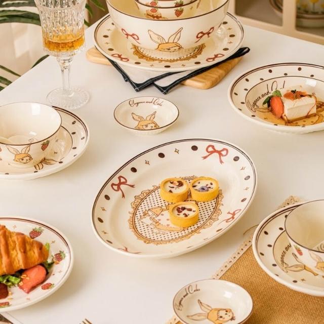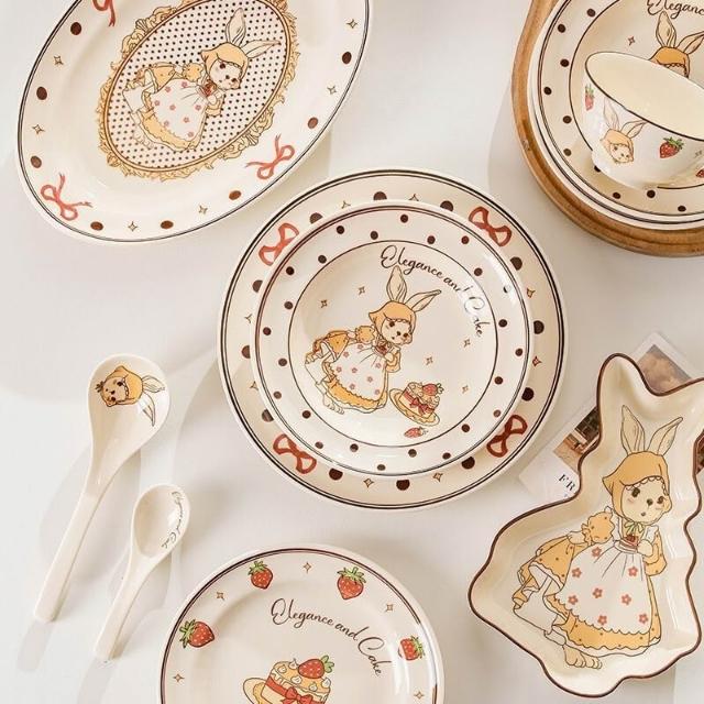 釉下彩碗碟套裝可愛陶瓷碗盤碟餐具高顏值飯碗湯碗家用盤子碗全套餐桌托盤置物盤收納盤簡約風甜品盤水果盤菜盤牛排盤點心碟餐具