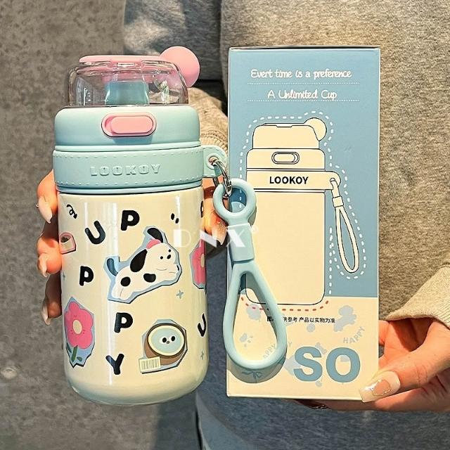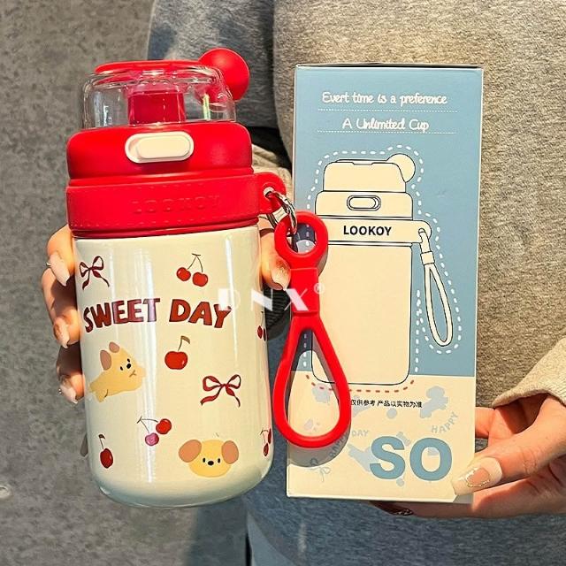 卡通水杯316不銹鋼保溫杯新款女高顏值吸管杯子學生可愛便攜杯子