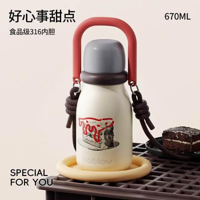 bablov花伴森保溫杯大容量女士高顏值2025新款便攜吸管水杯不銹鋼