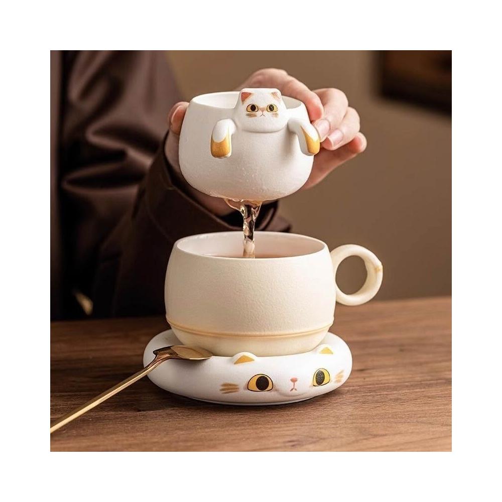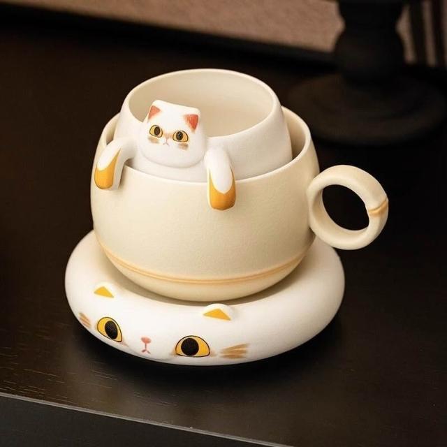 招財貓泡茶杯陶瓷茶水分離馬克杯禮物咖啡杯水杯女士高顏值茶杯好物創意