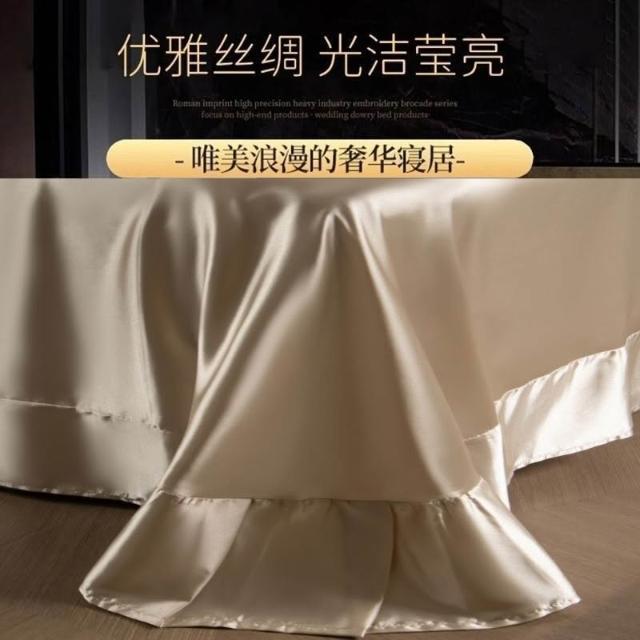 奢華真絲桑蠶絲四件套雙面絲綢裸睡被套冰絲天絲床品批發亞馬遜