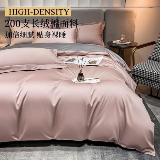 高級感200支長絨棉四件套全棉純棉床單被套 輕奢裸睡床笠款三件套