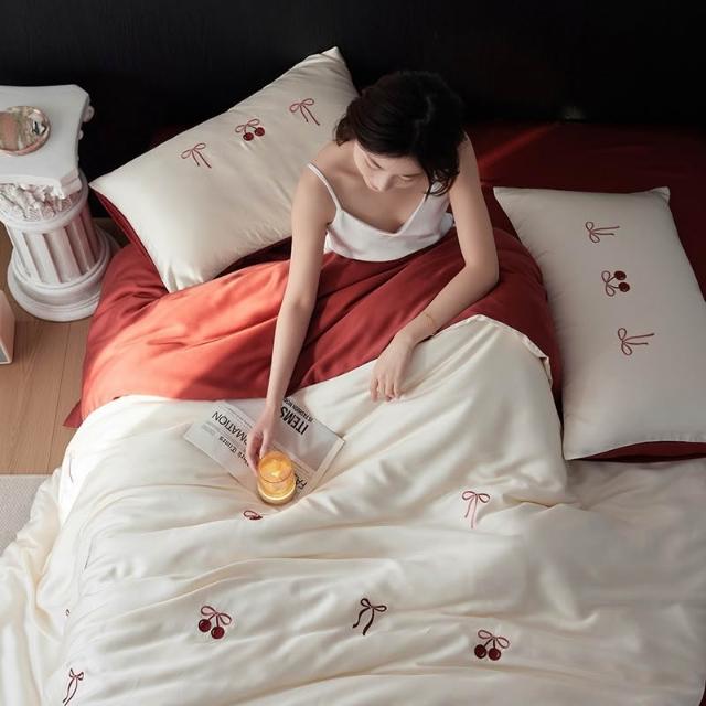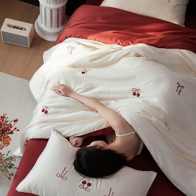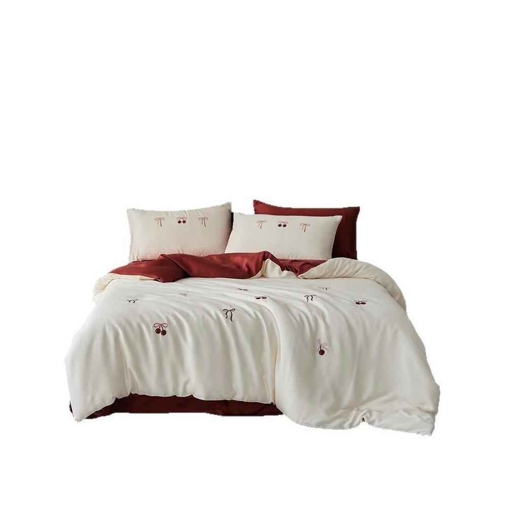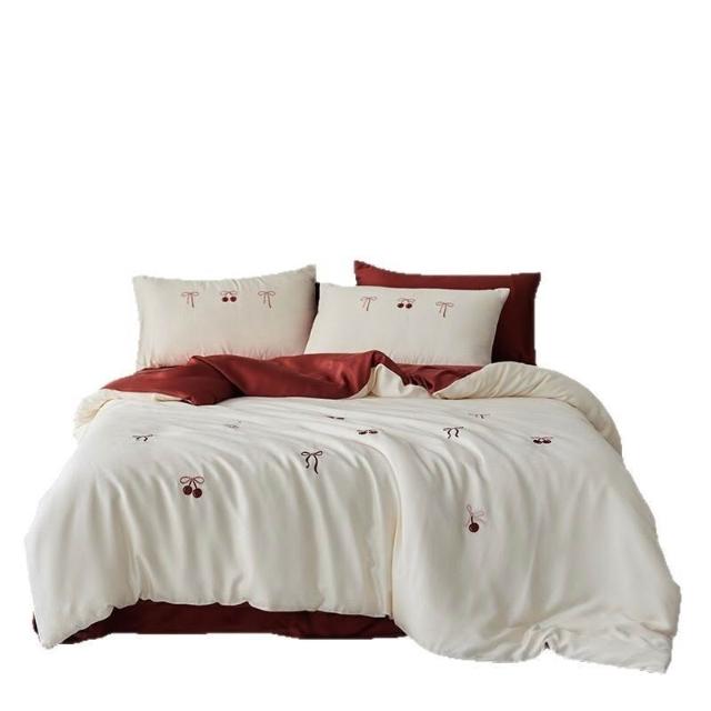 輕奢A類母嬰60S蘭精天絲刺繡四件套夏季冰絲床單被套喬遷婚嫁床品