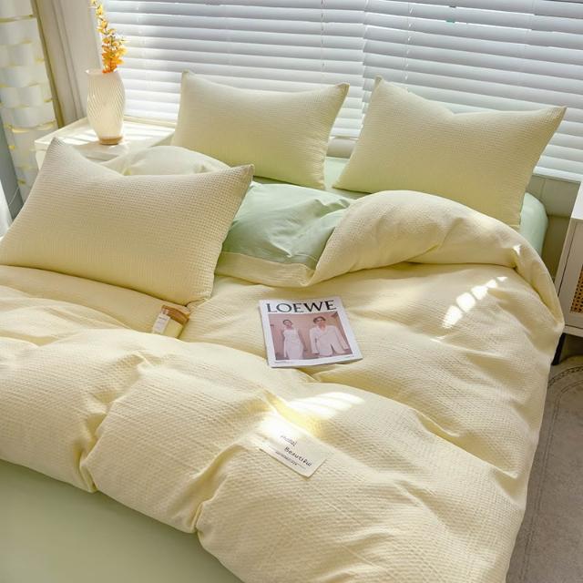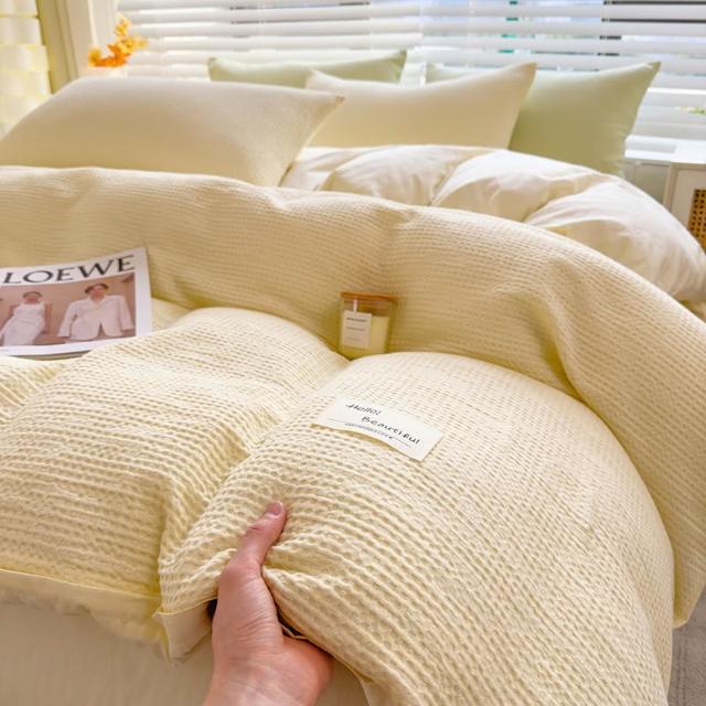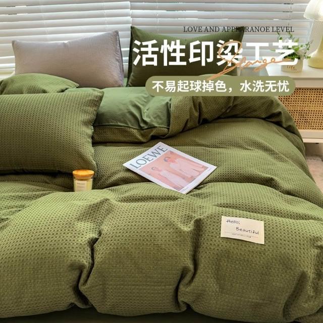 華夫格提花四件套雙人被罩學生宿舍單人被套加大款四季家用三件套