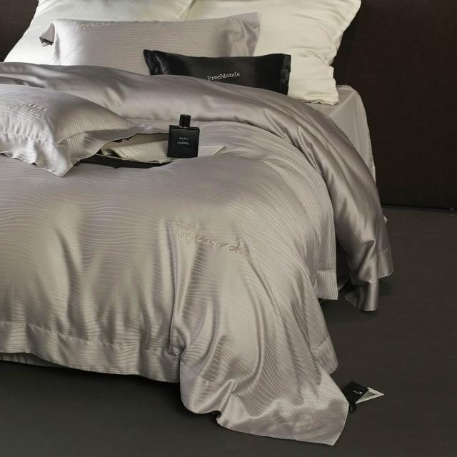 輕奢風提花蘭精天絲四件套夏季涼感萊賽爾被套床單冰絲高級感床品