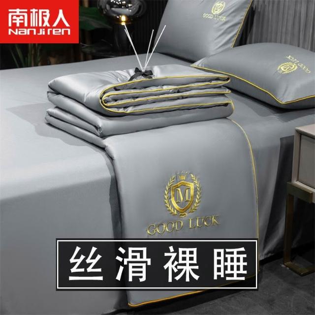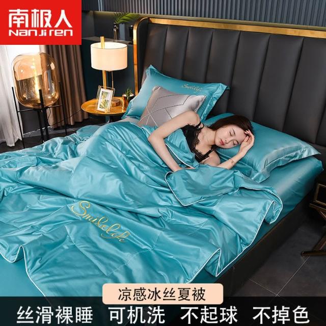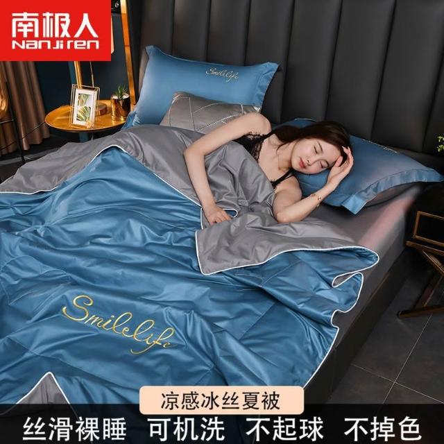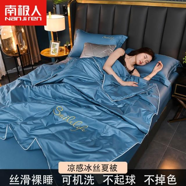 南極人冰絲夏涼被四件套可水洗天絲空調被單人夏被雙人春秋被薄被