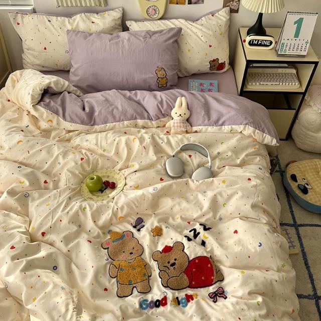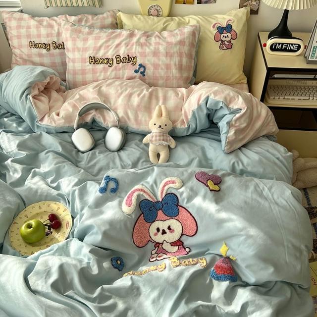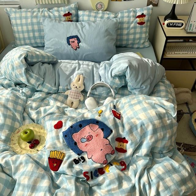 A類床上用品四件套純棉全棉床單被套被罩床笠學生宿舍三件套4四季