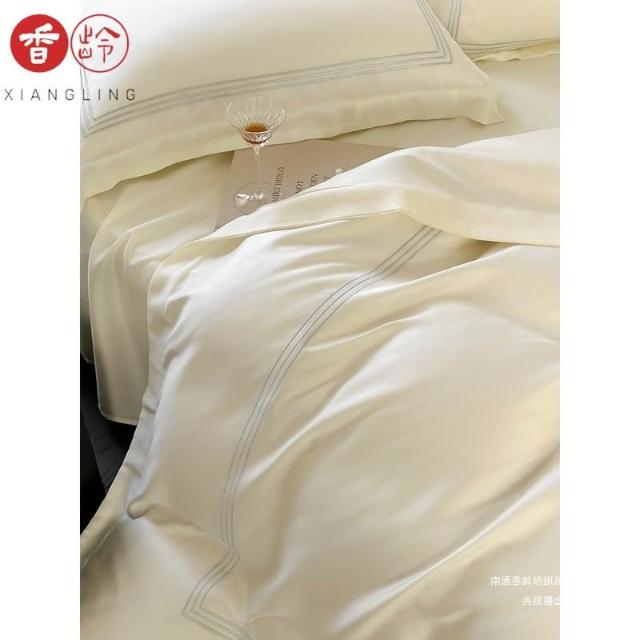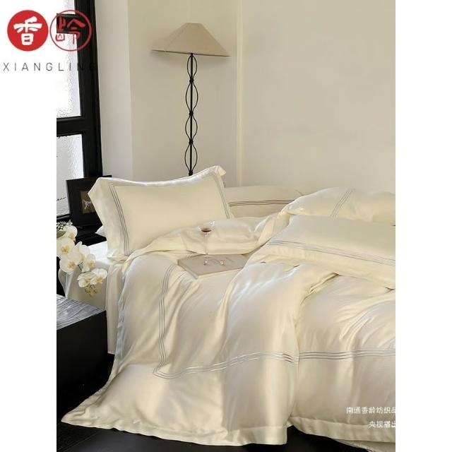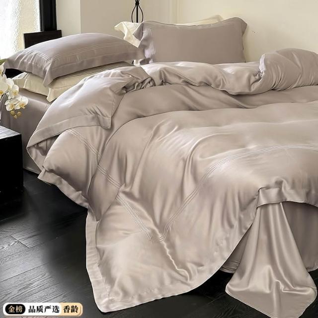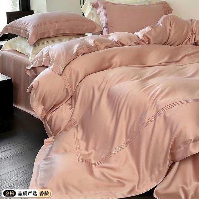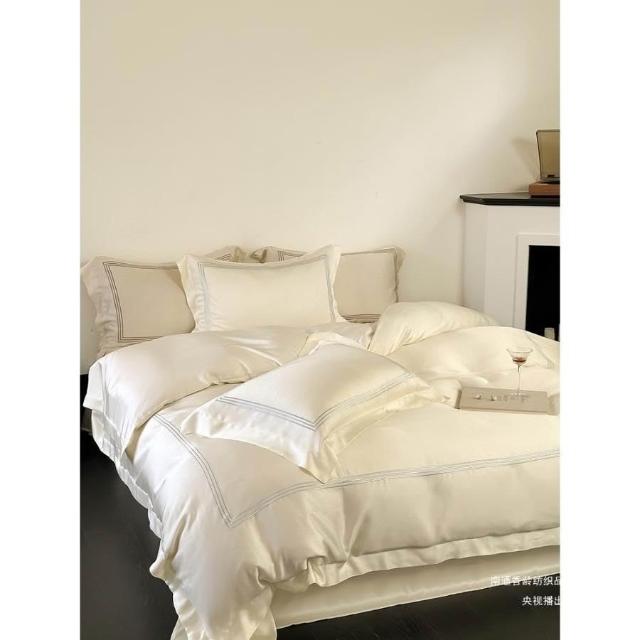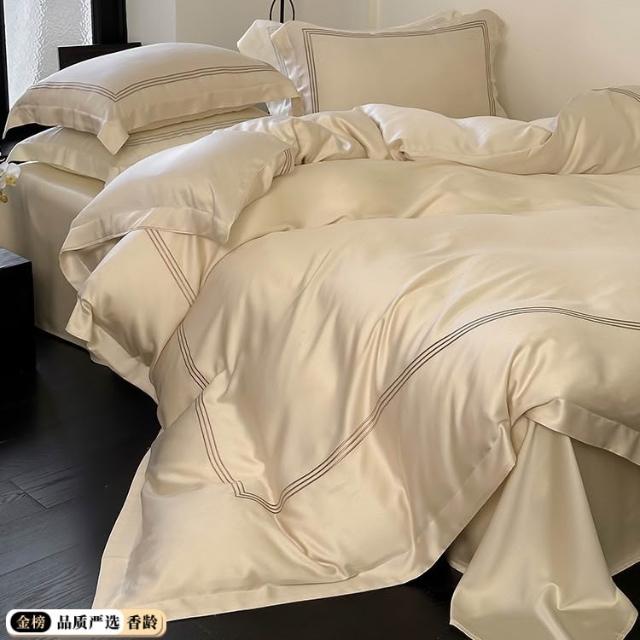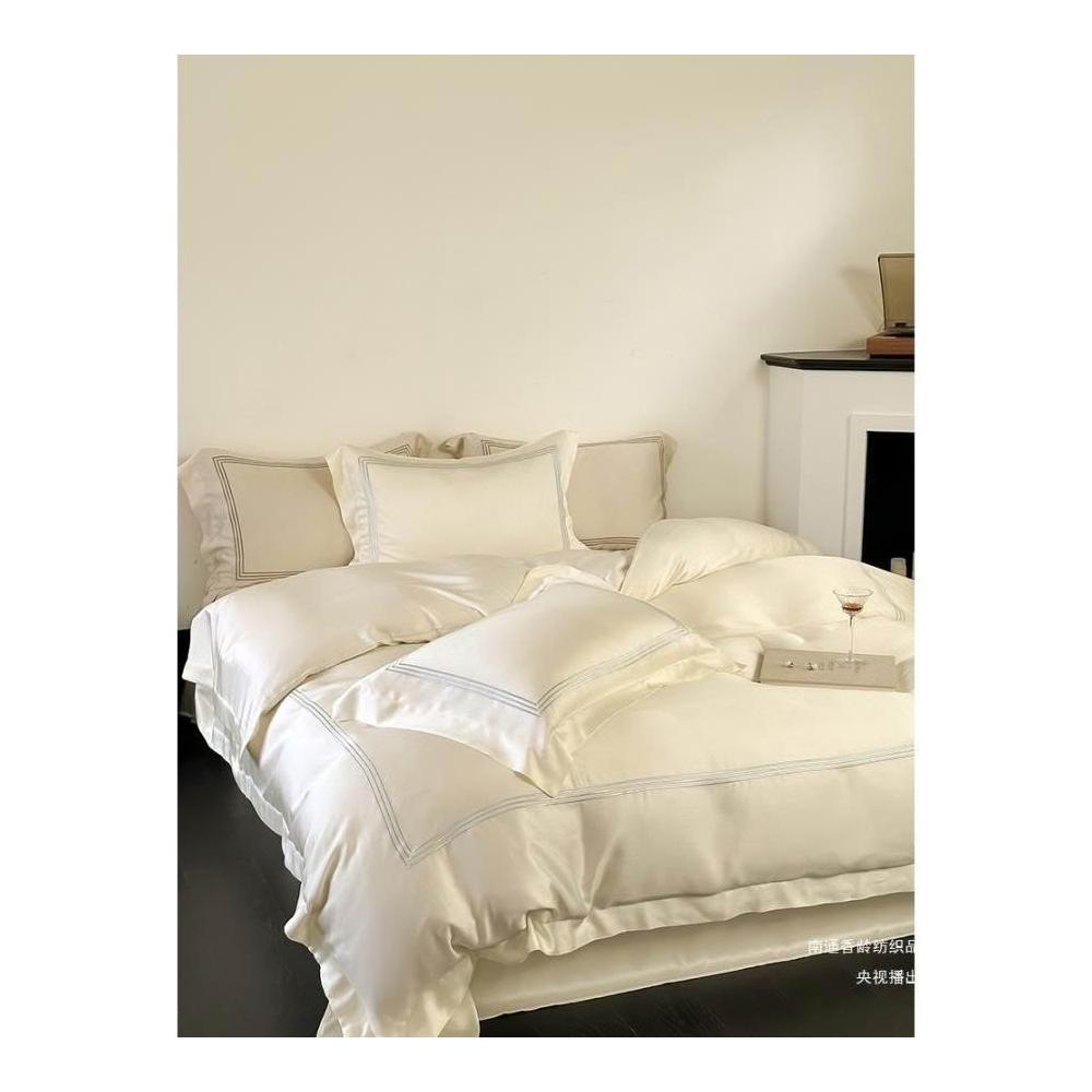 60支蘭精天絲四件套輕奢繡花線條冰絲床上用品夏季涼爽絲滑北歐風