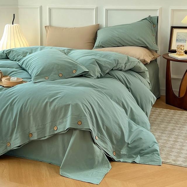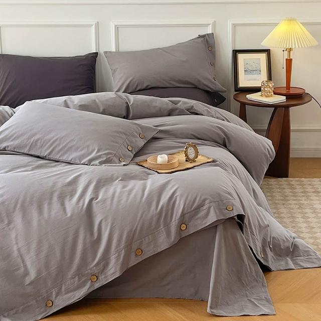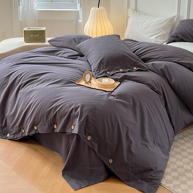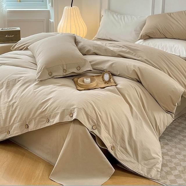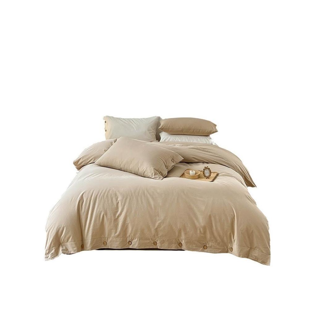 新款無印風簡約四件套純色被套被罩日式水洗棉紐扣款三件套批發