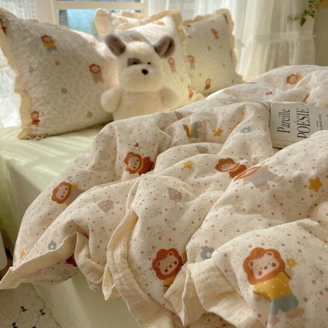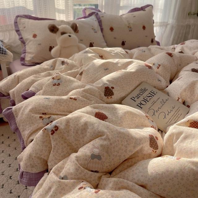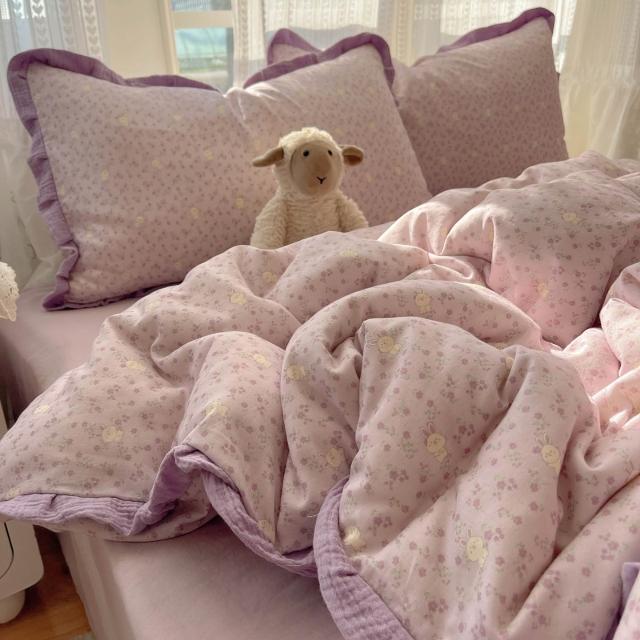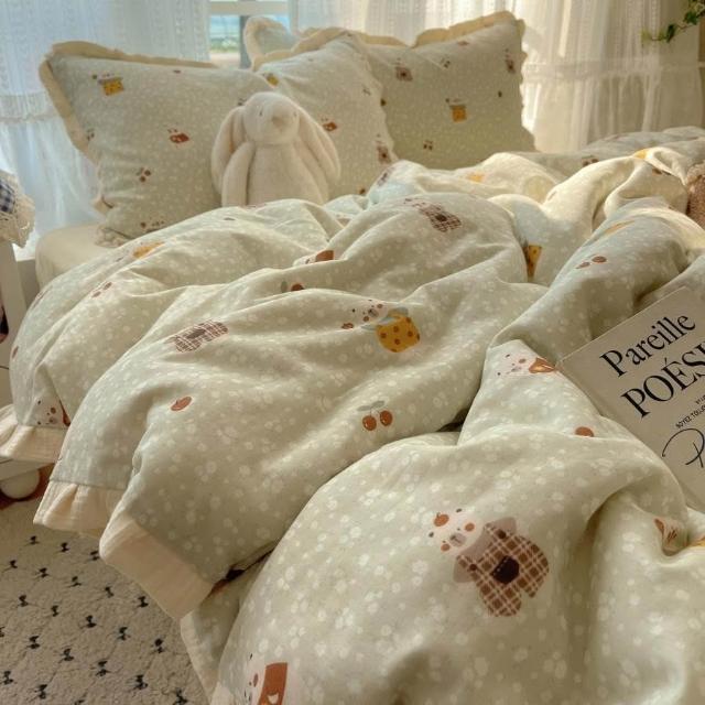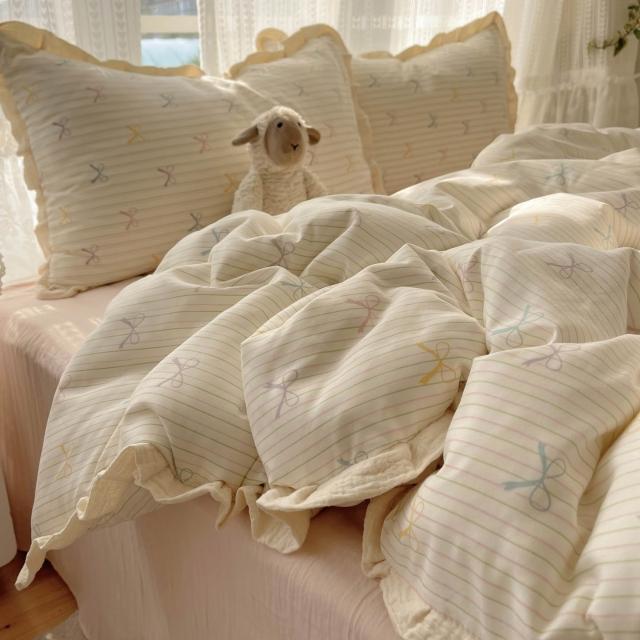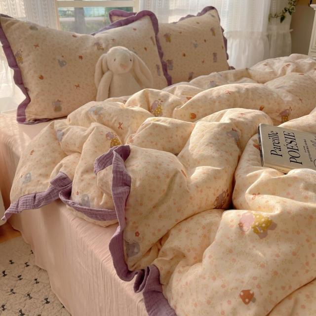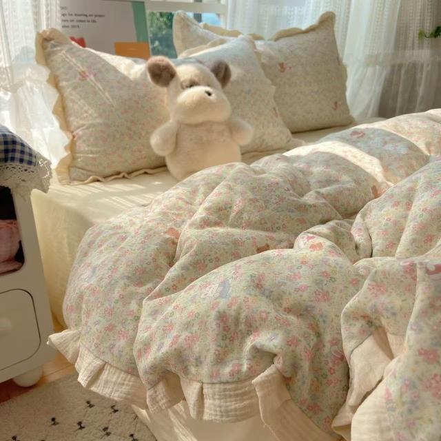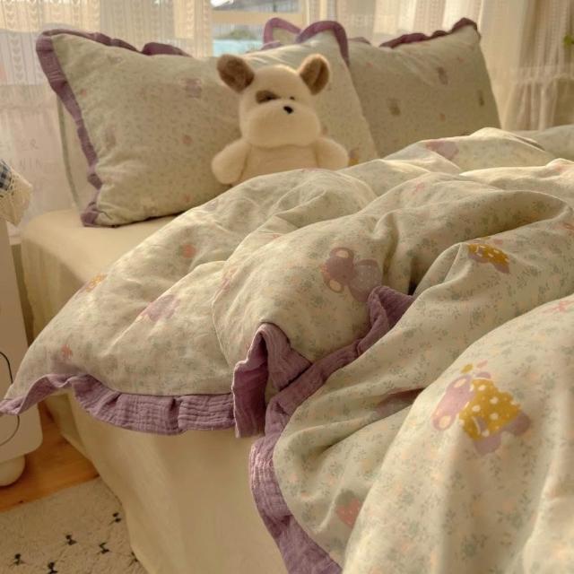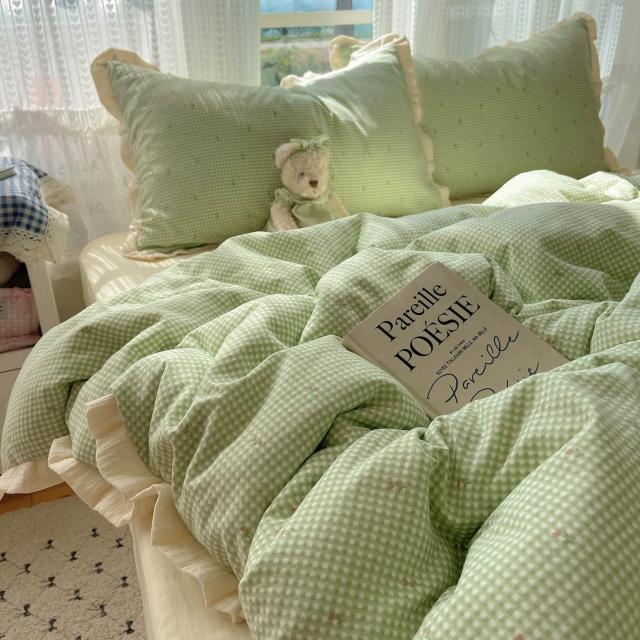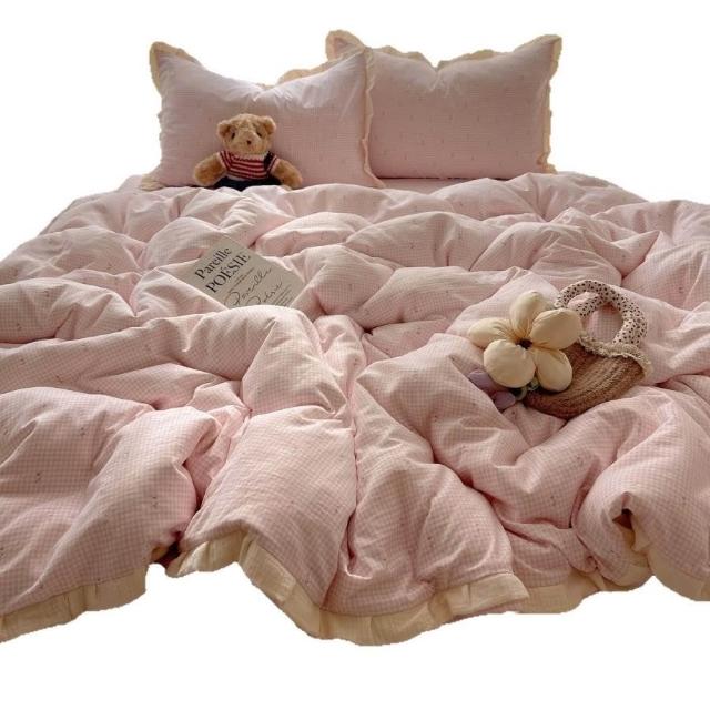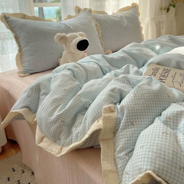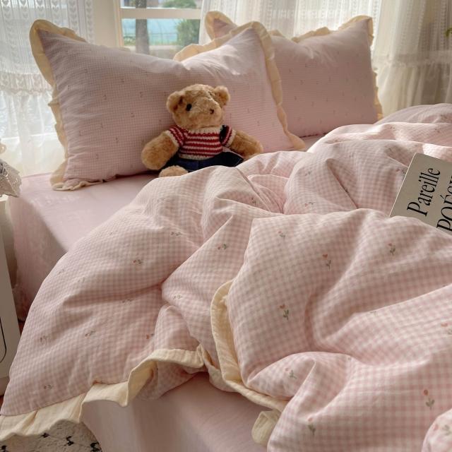 A類法式小清新水洗棉床品四件套雙層紗布花邊床單被套宿舍三件套4