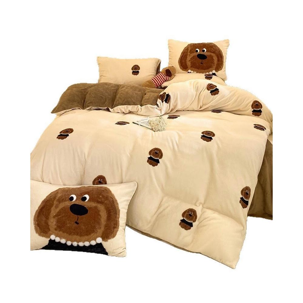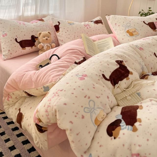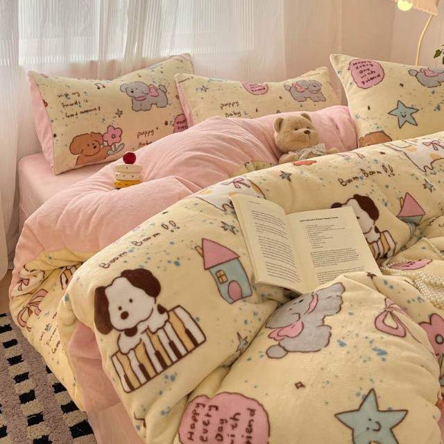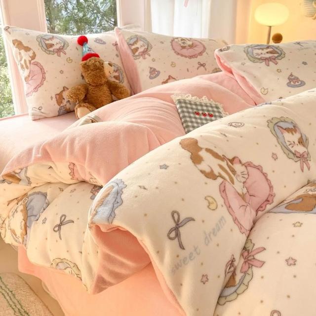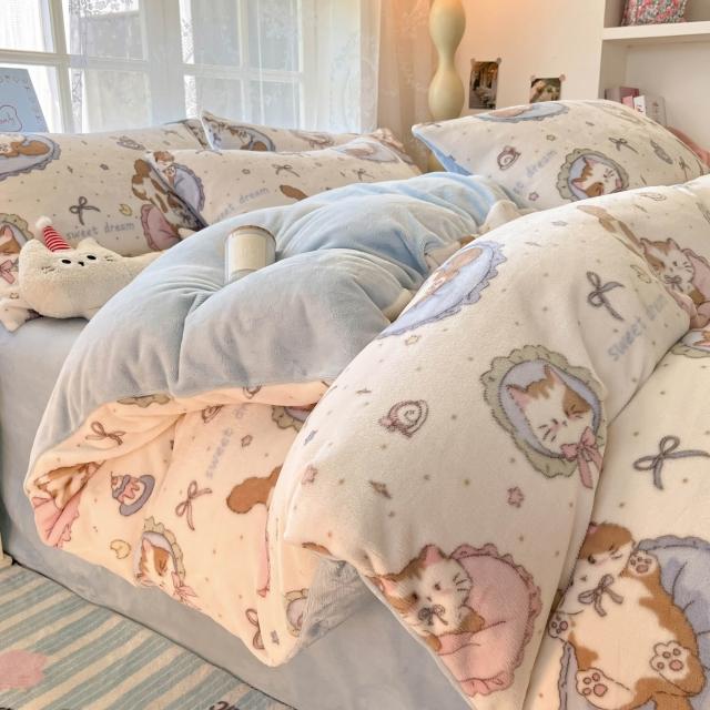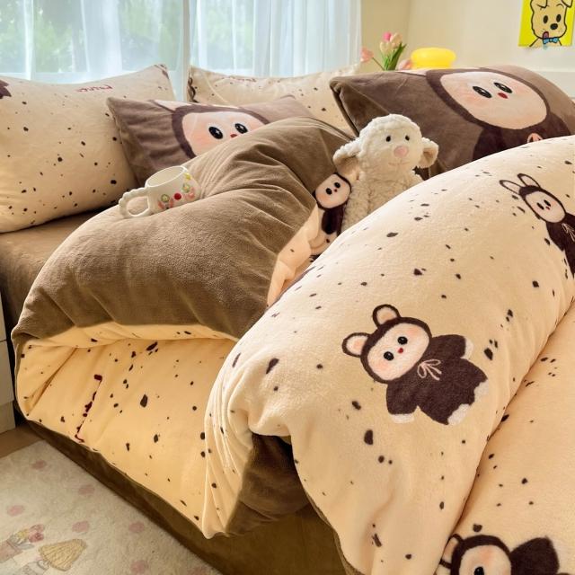 秋冬A類ins卡通風高克重印花牛奶絨三件套四件套及單被套床上用品
