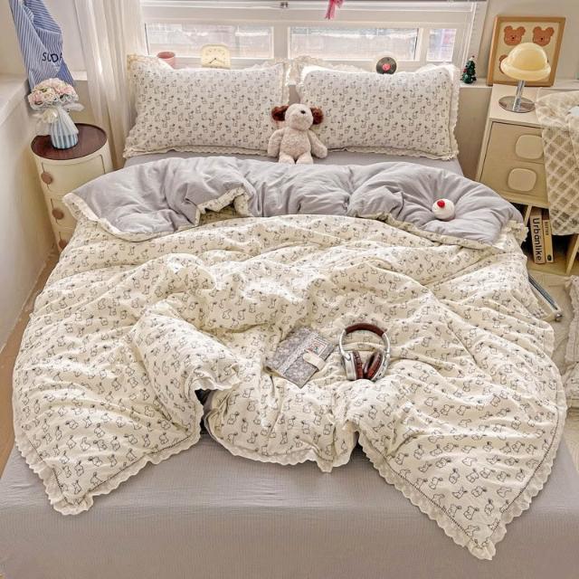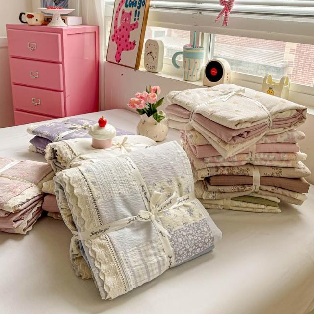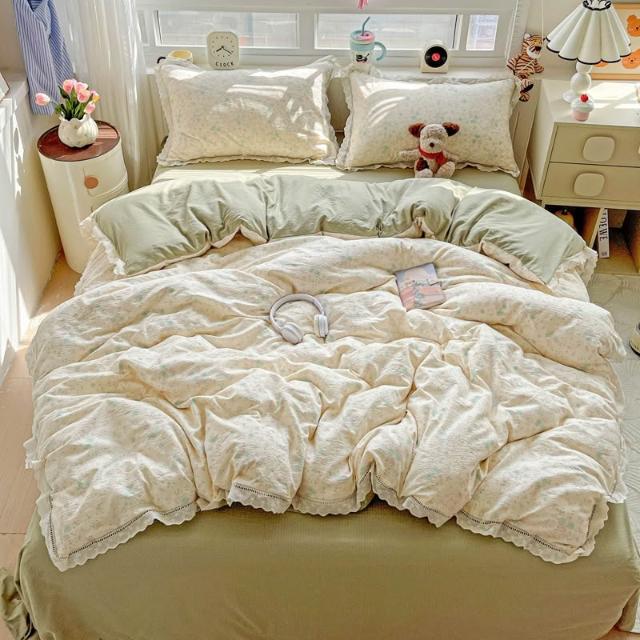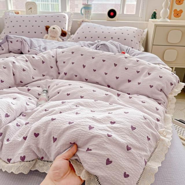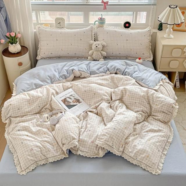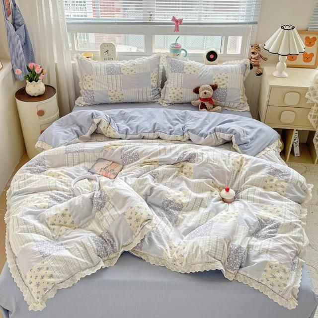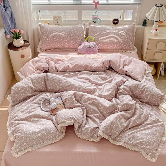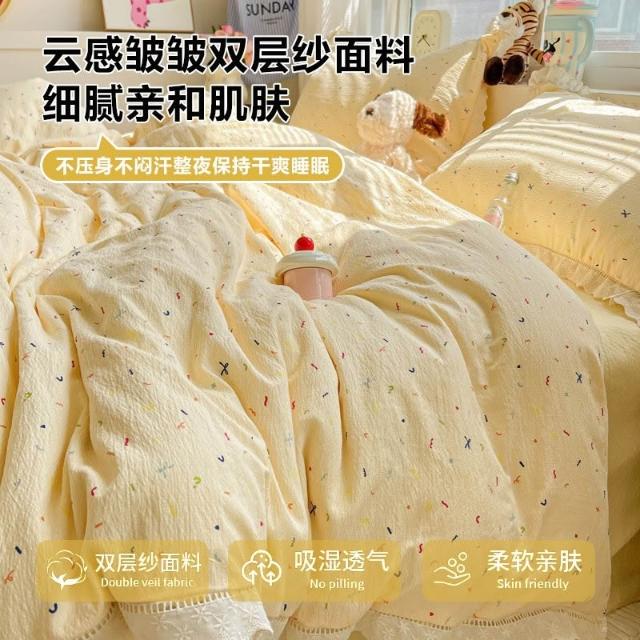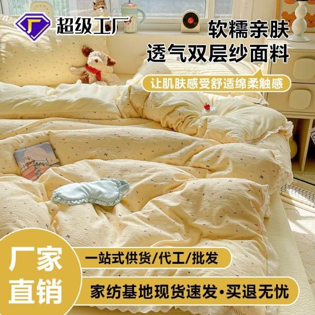 優藝欣A類皺皺紗雙層紗全棉花邊四件套單雙人宿舍床單床笠款套件