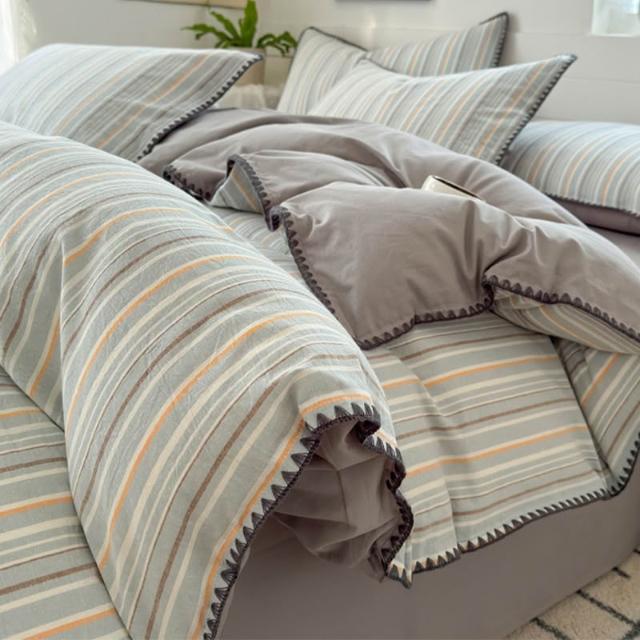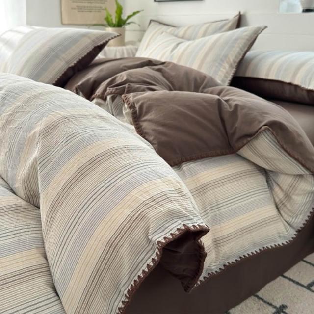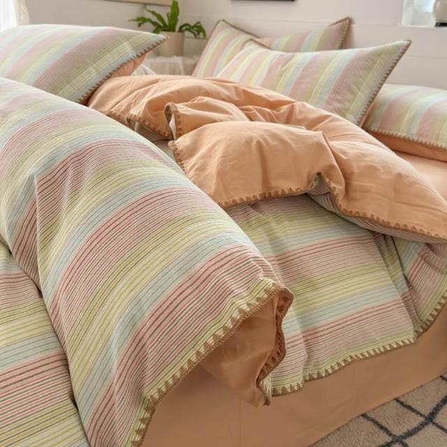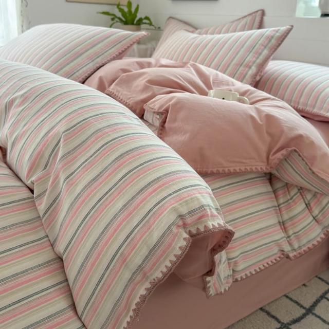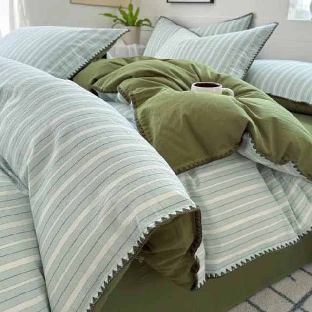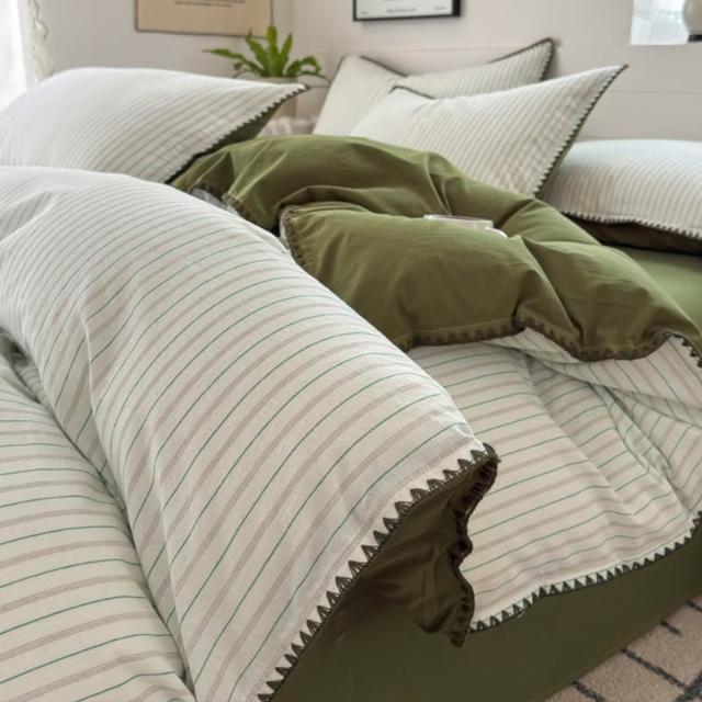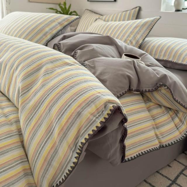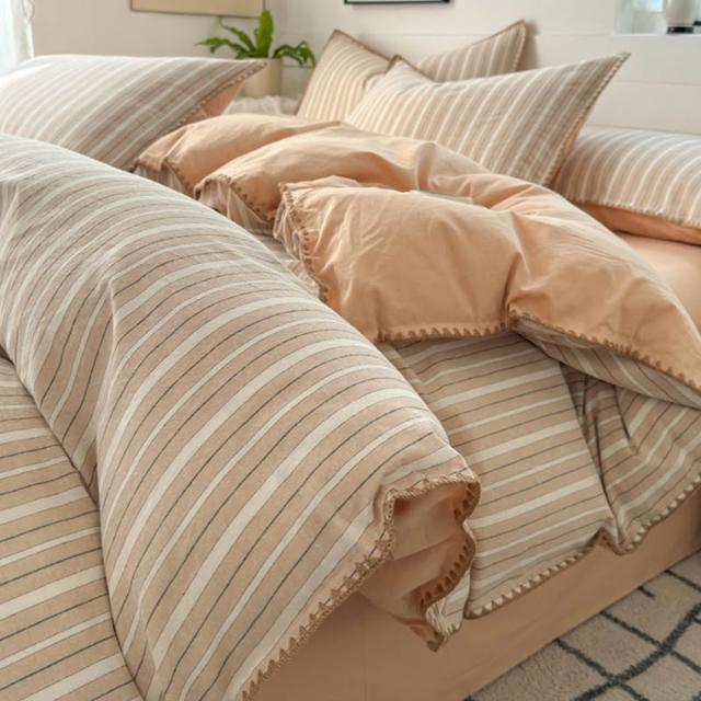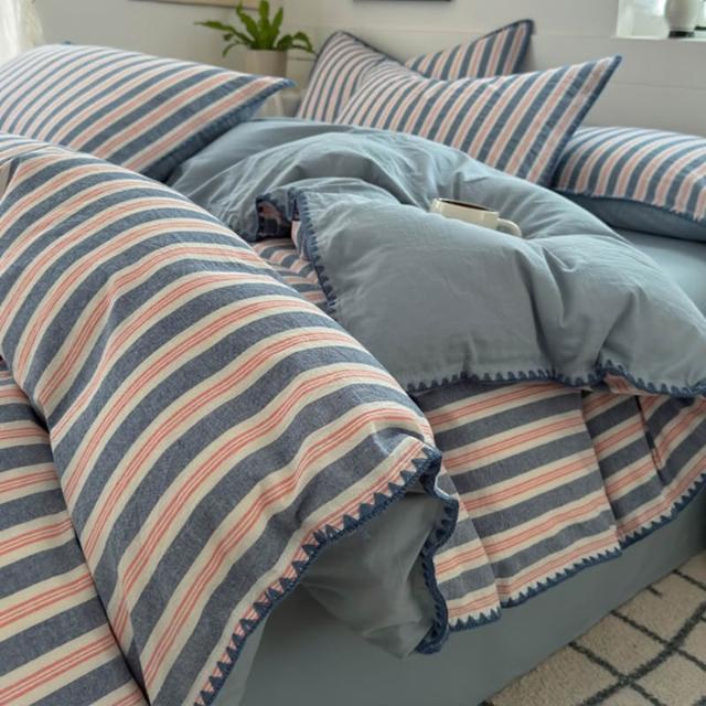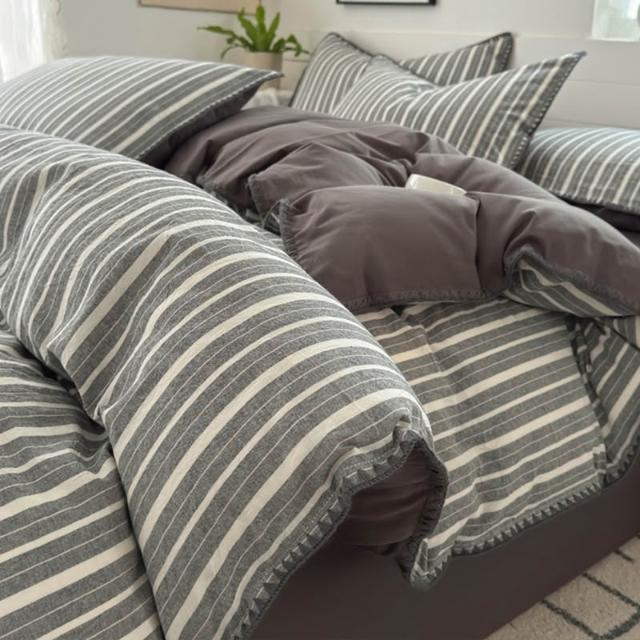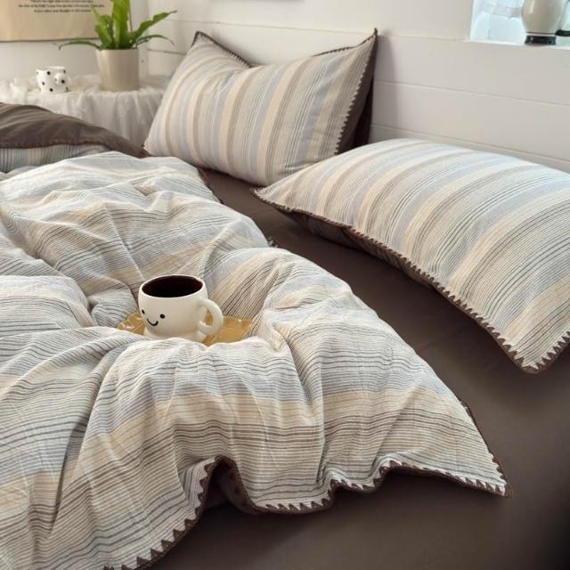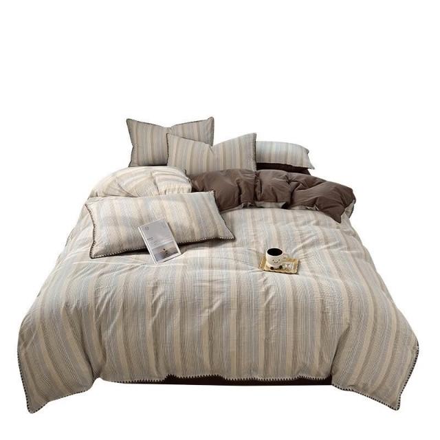純棉水洗棉床上四件套簡約條紋床品全棉100被套罩床單三件套床品
