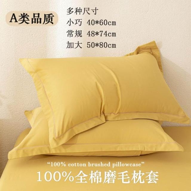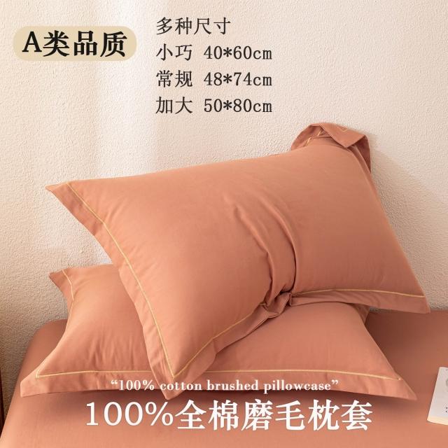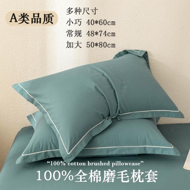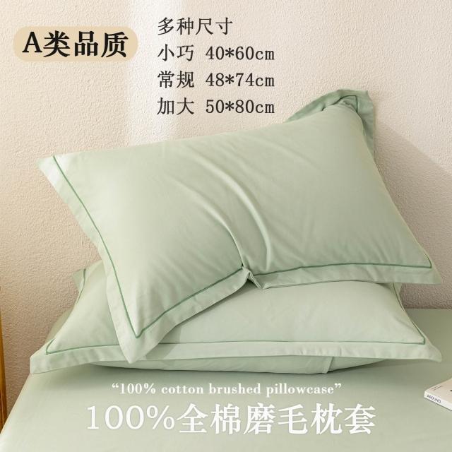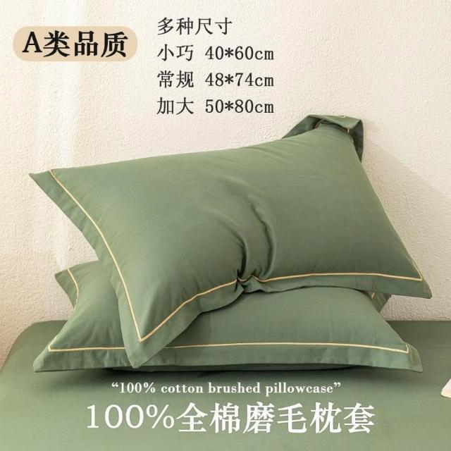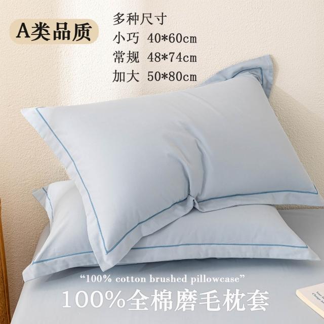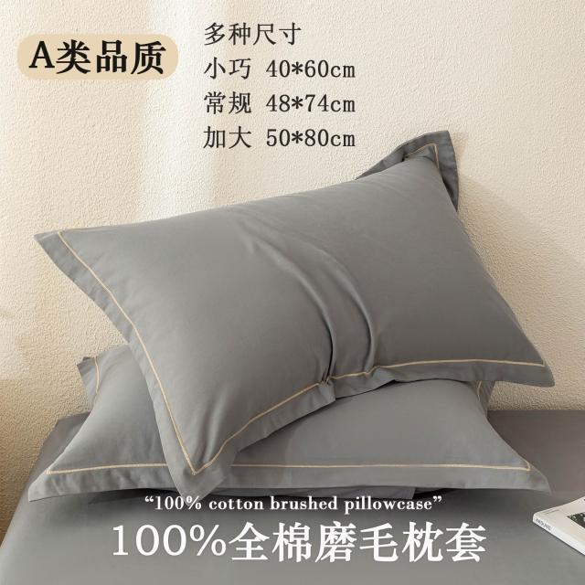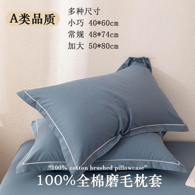 A類100%全棉單枕套純色加厚磨毛50*80枕套40*60/48*74 枕芯保護套