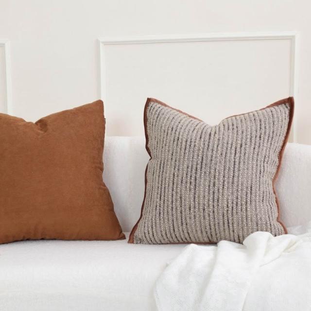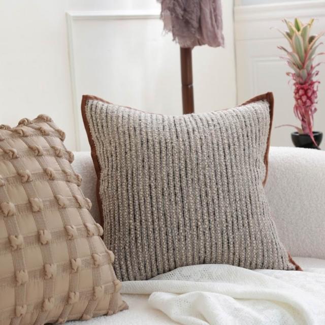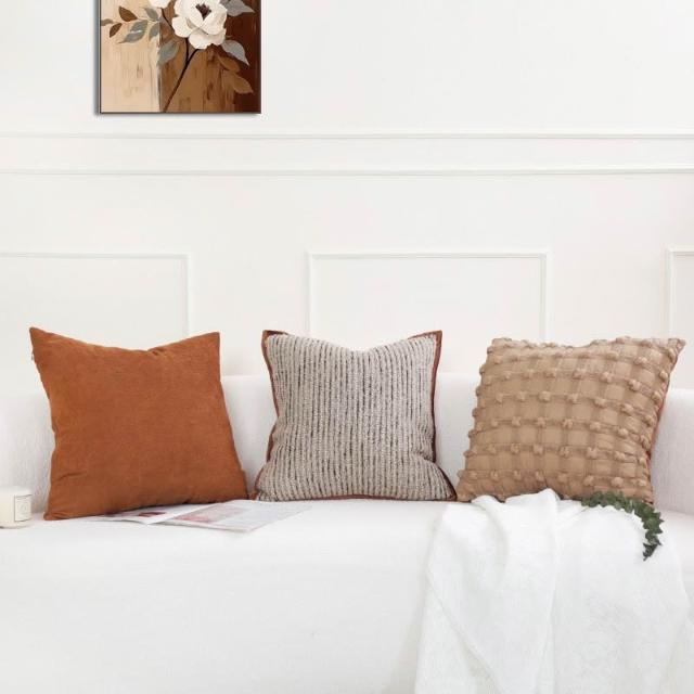 侘寂風簡約條紋棕色系抱枕套客廳沙發靠墊樣板間民宿靠枕腰靠熱銷