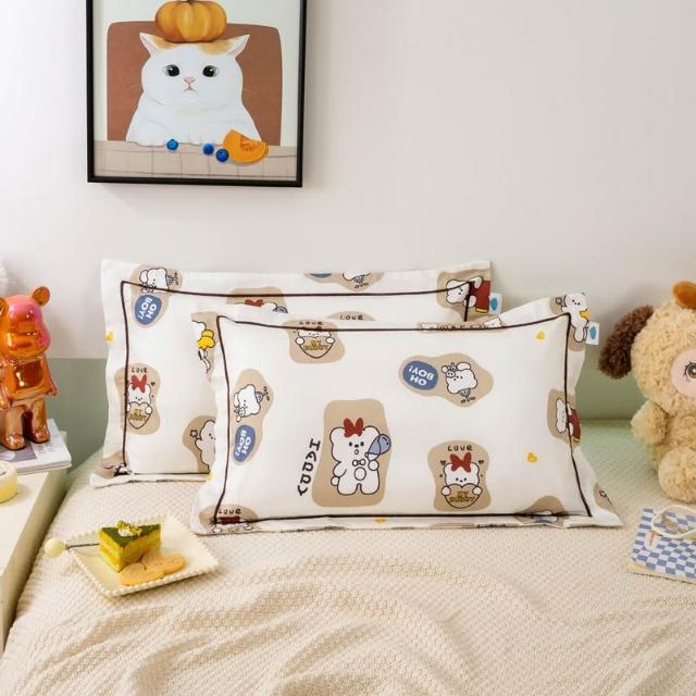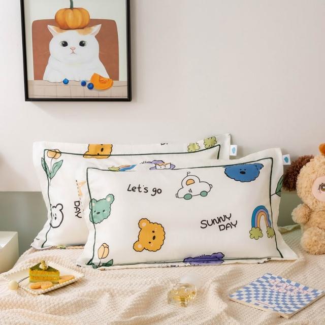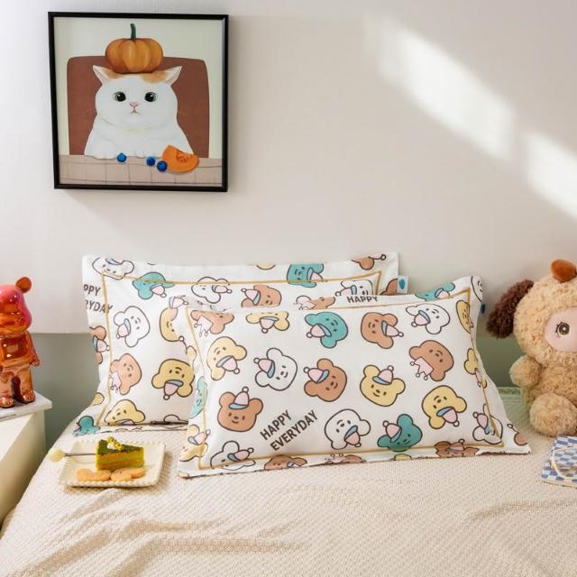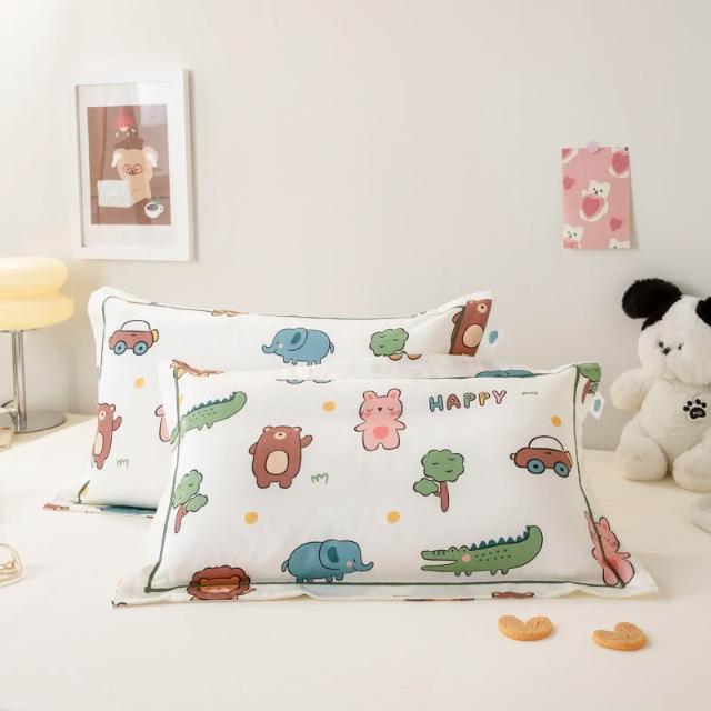 嚴選長絨棉枕套滾邊兒童小枕套印花卡通全棉貢緞枕頭套絲滑感四季