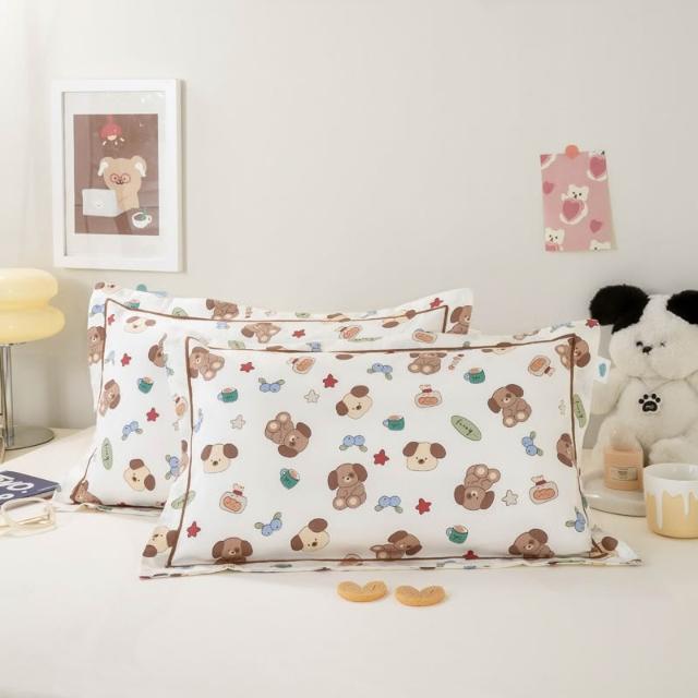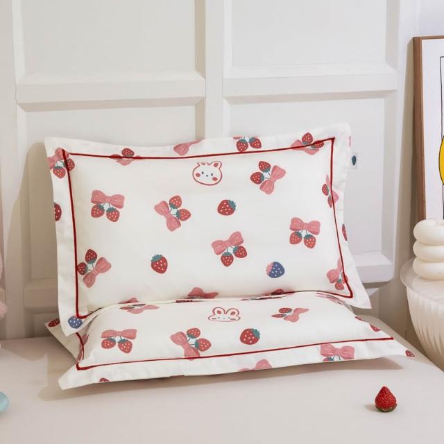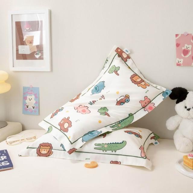 嚴選長絨棉枕套滾邊兒童小枕套印花卡通全棉貢緞枕頭套絲滑感四季