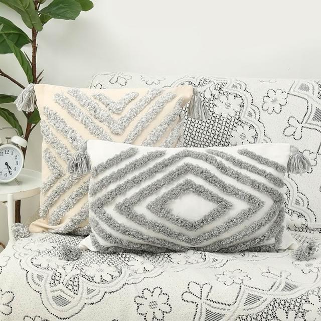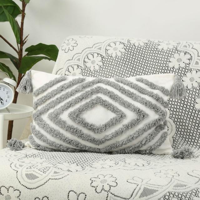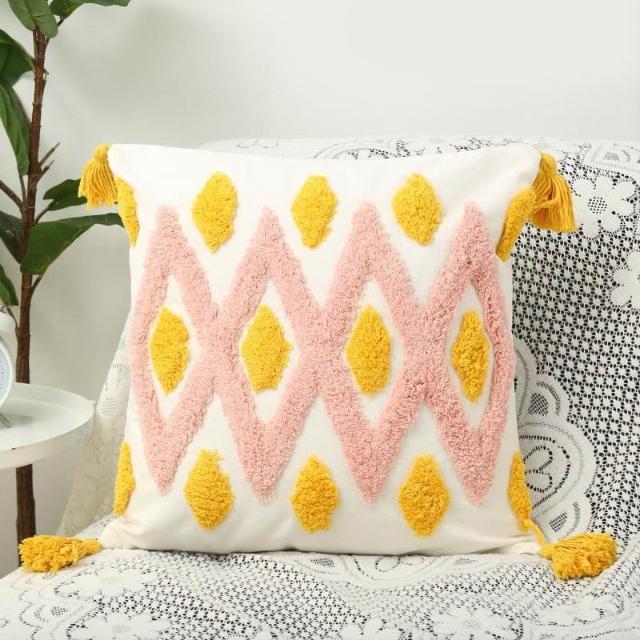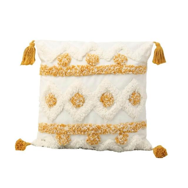 方形簇絨繡花抱枕波西米亞風簡約流蘇毛絨靠墊客廳沙發臥室靠枕套