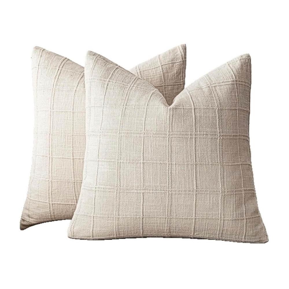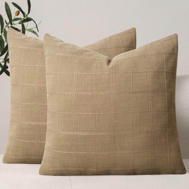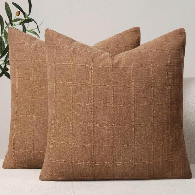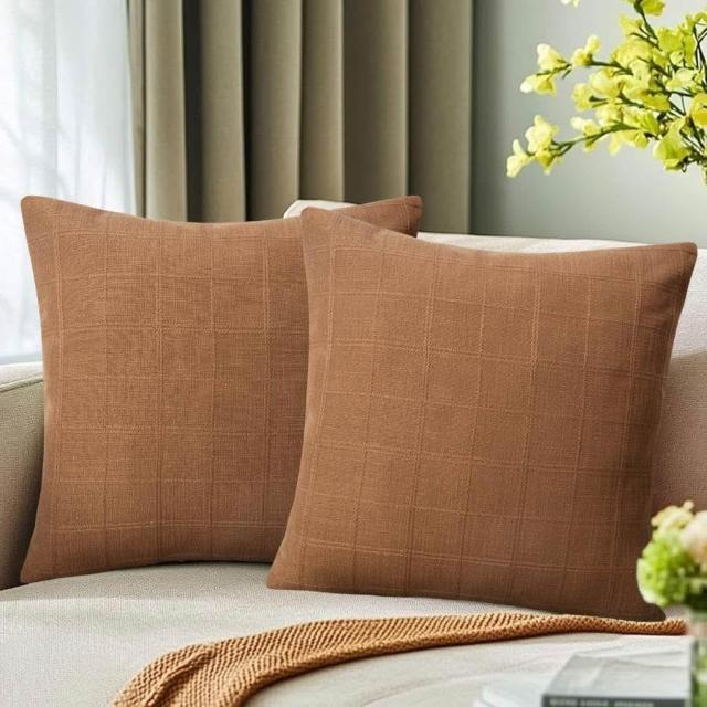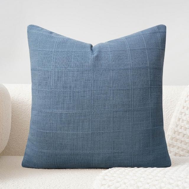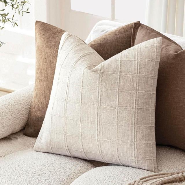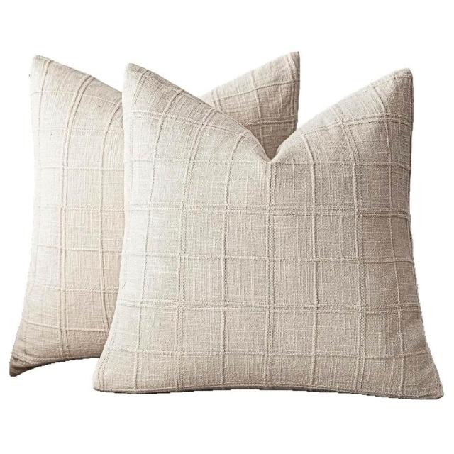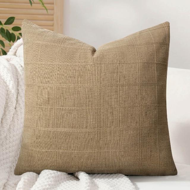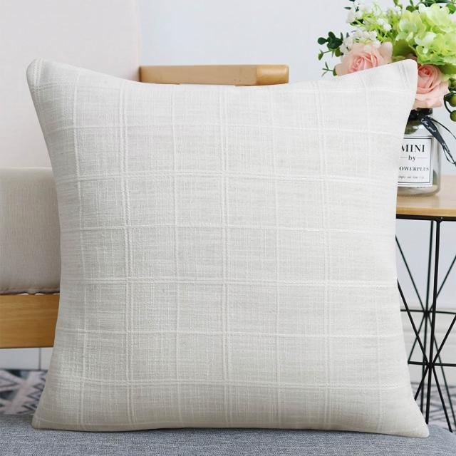亞麻格子抱枕套中性農舍復古靠墊套現代波西米亞家居裝飾沙發腰枕