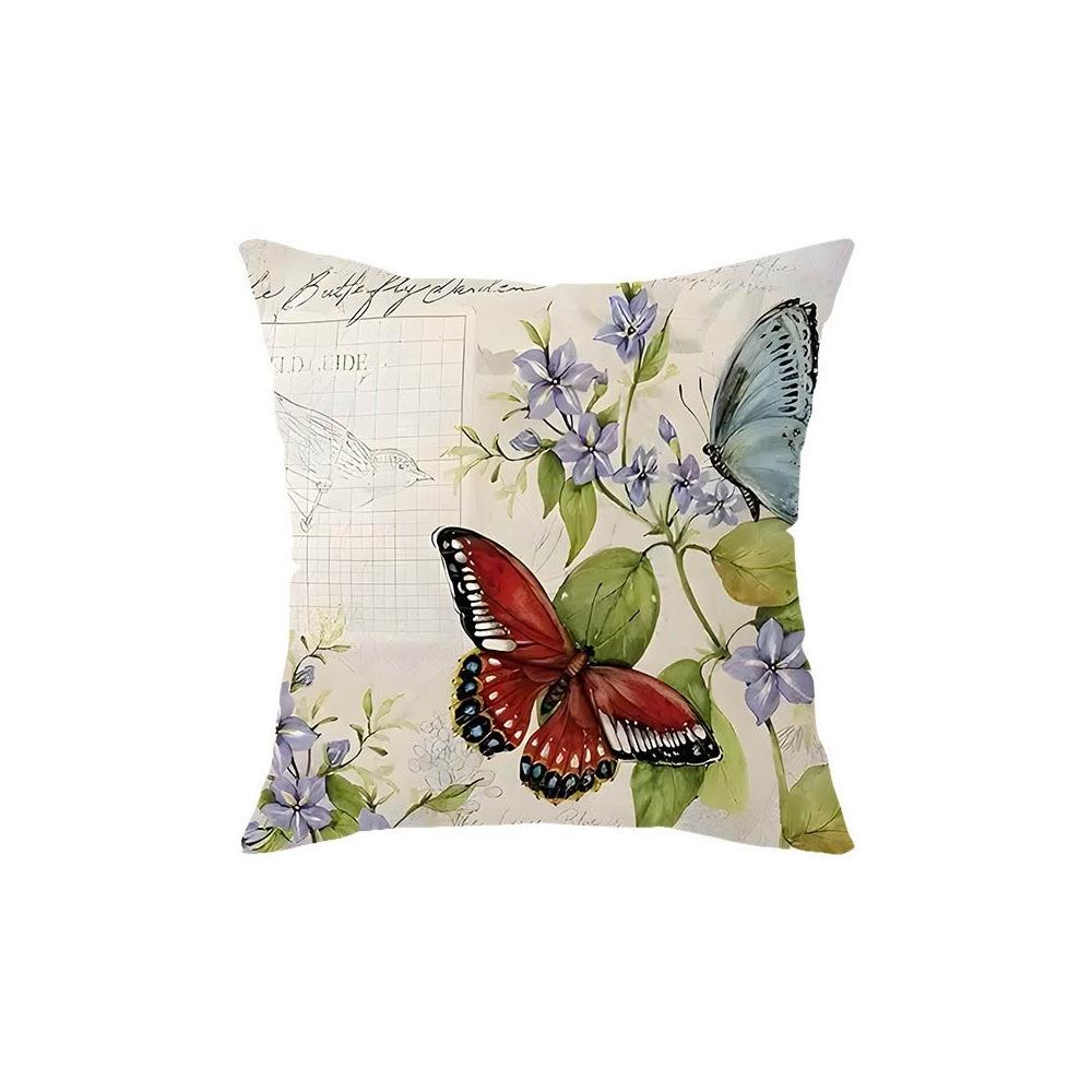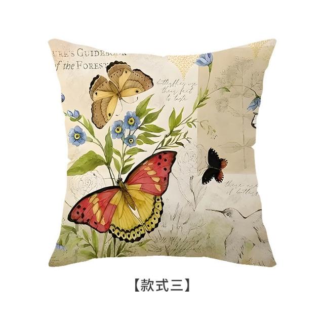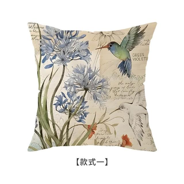 跨境春季新款花朵小鳥抱枕temu花鳥系列印花抱枕套亞麻靠墊套客廳