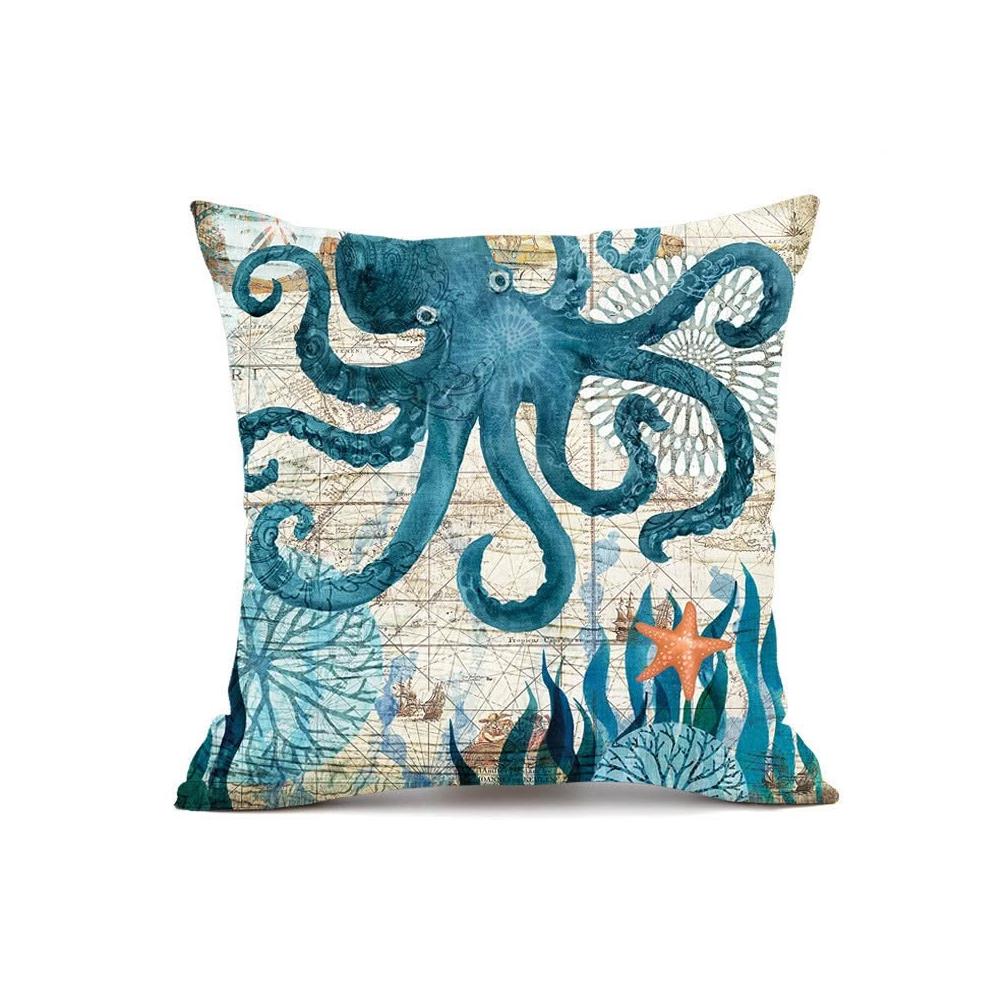 跨境海洋生物海龜海馬鯨魚章魚靠墊套抱枕套ebay亞馬遜來圖可定