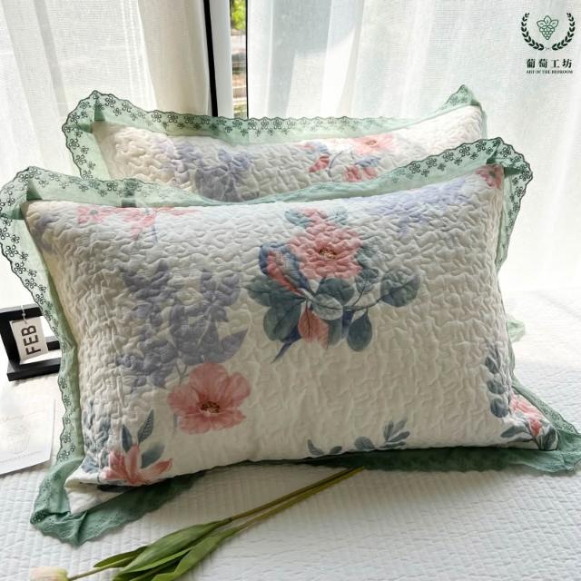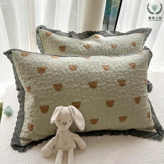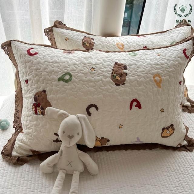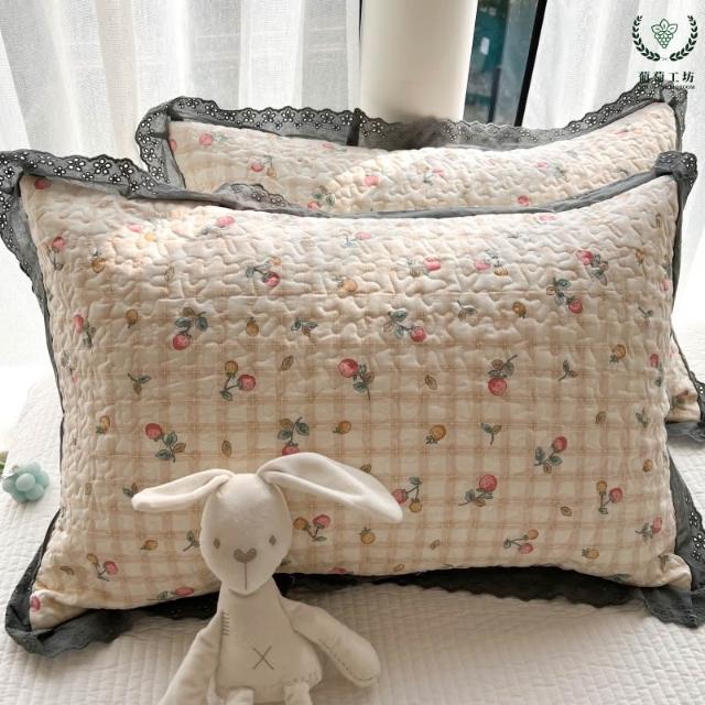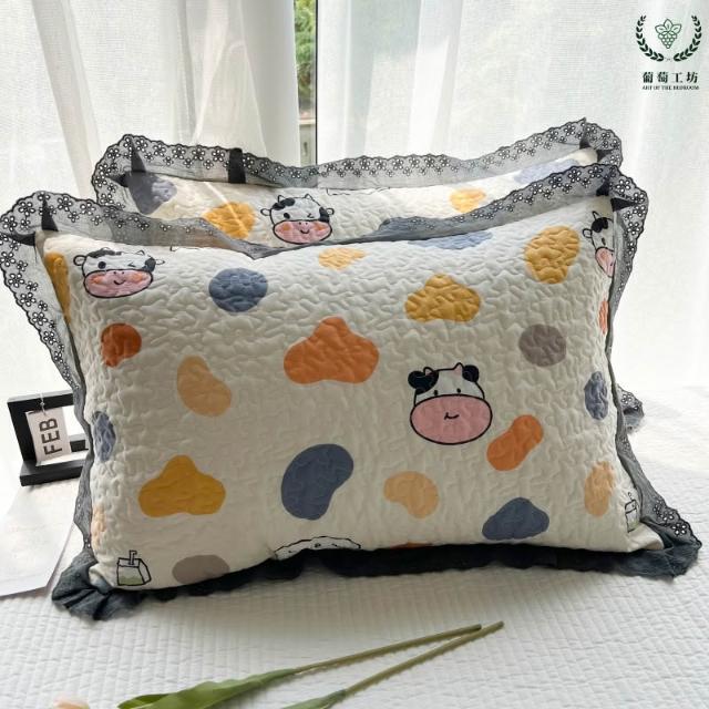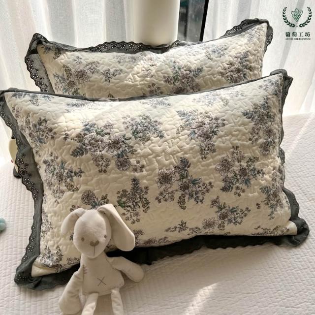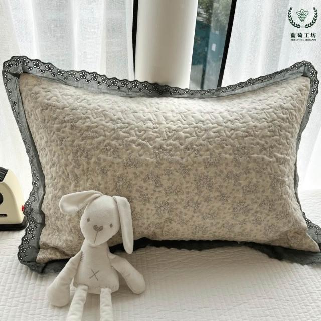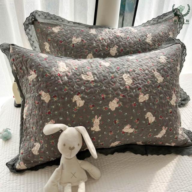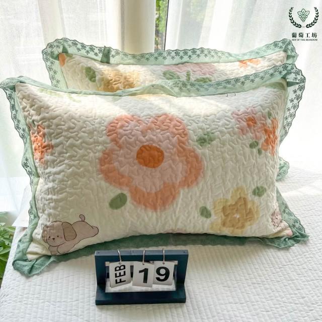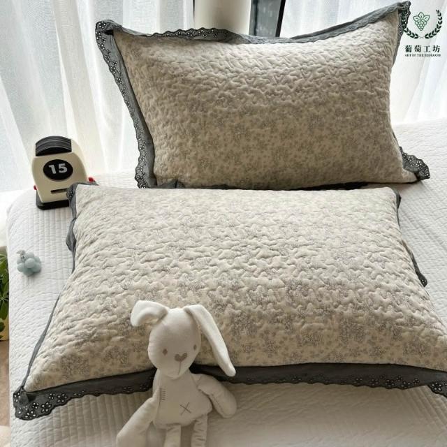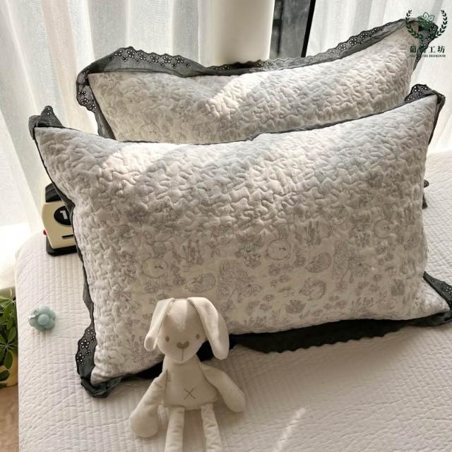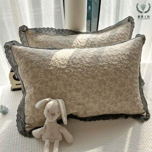夾棉花邊枕套48x74純棉A類韓版絎縫吸汗學生宿舍家用信封枕頭套