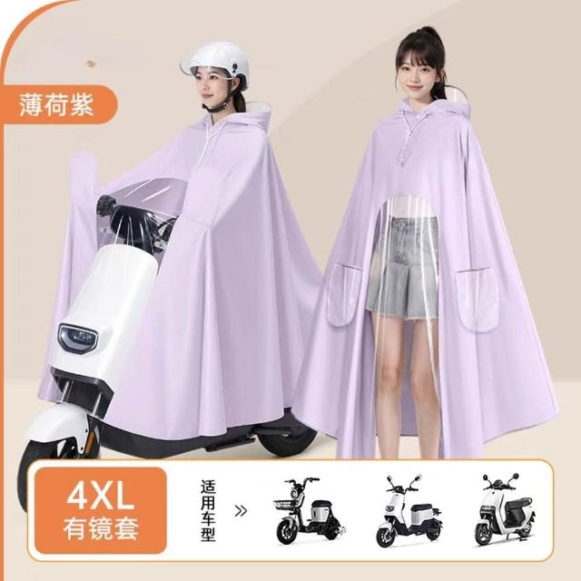 電動車雨衣全身防暴雨加厚加大可戴頭盔騎行遮腳帶面罩電瓶車雨披