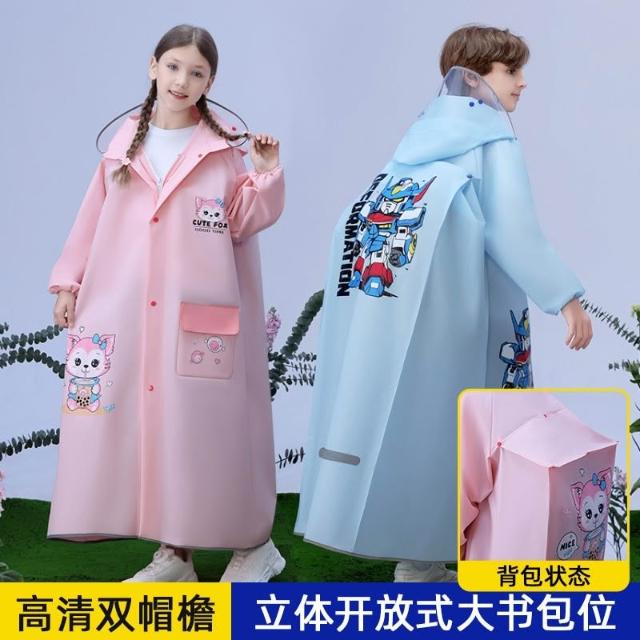 兒童雨衣男女孩長款全身防暴雨初中小學生上學用大童帶書包位雨披