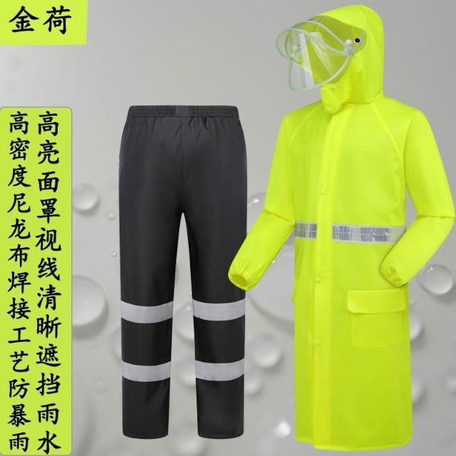國潮商丘雨衣連體熒光綠電動車摩托車勞保環衛風衣防暴雨連體雨衣