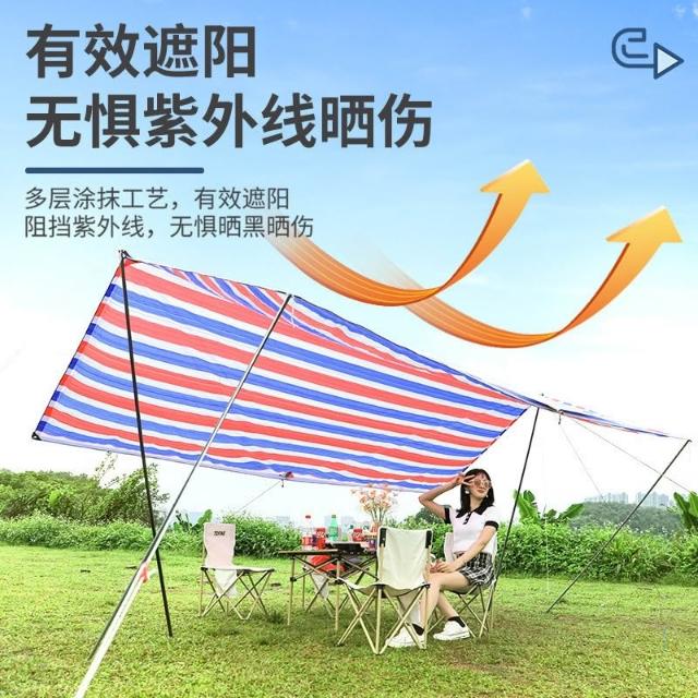 戶外天幕帳篷野營露營紅白藍帆布彩條布防雨防曬遮陽布棚野炊裝布