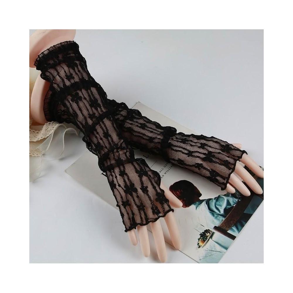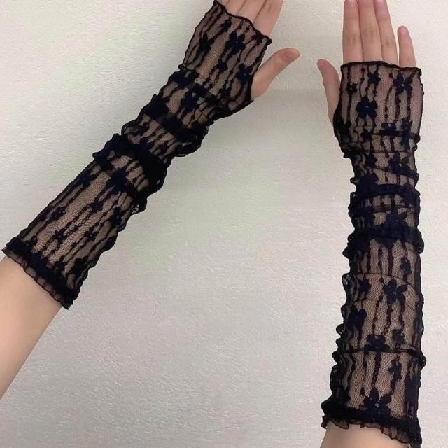 免運新款夏季女防曬蕾絲袖套冰絲長款性感半指手套彈力時尚護臂冰
