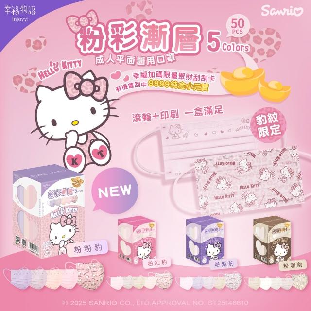 幸福物語 Hello Kitty 豹紋限定粉彩漸層 成人平面醫用口罩 (50入/盒)