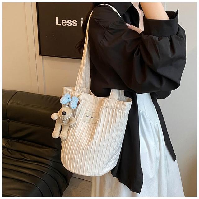 RAY FAIR美好生活 可愛韓系輕量菱格紋水桶包/肩背包 白色