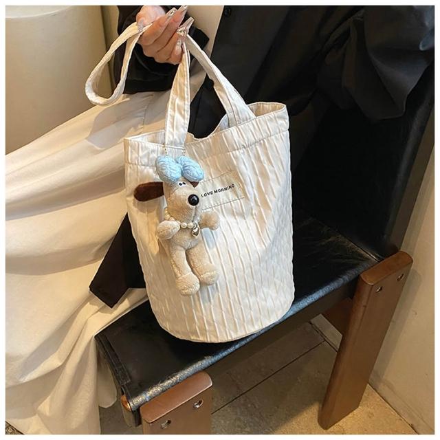 RAY FAIR美好生活 可愛韓系輕量菱格紋水桶包/肩背包 白色