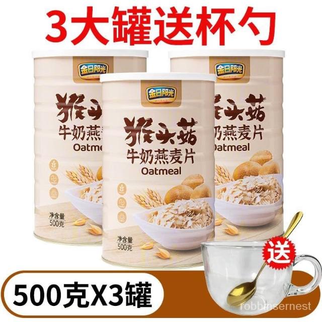 精選 優選 麥片 金日陽光猴頭菇牛奶燕麥片飽腹穀物奶香早餐衝泡卽食500/g罐