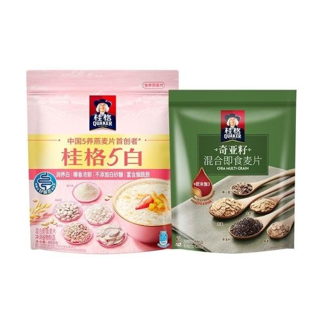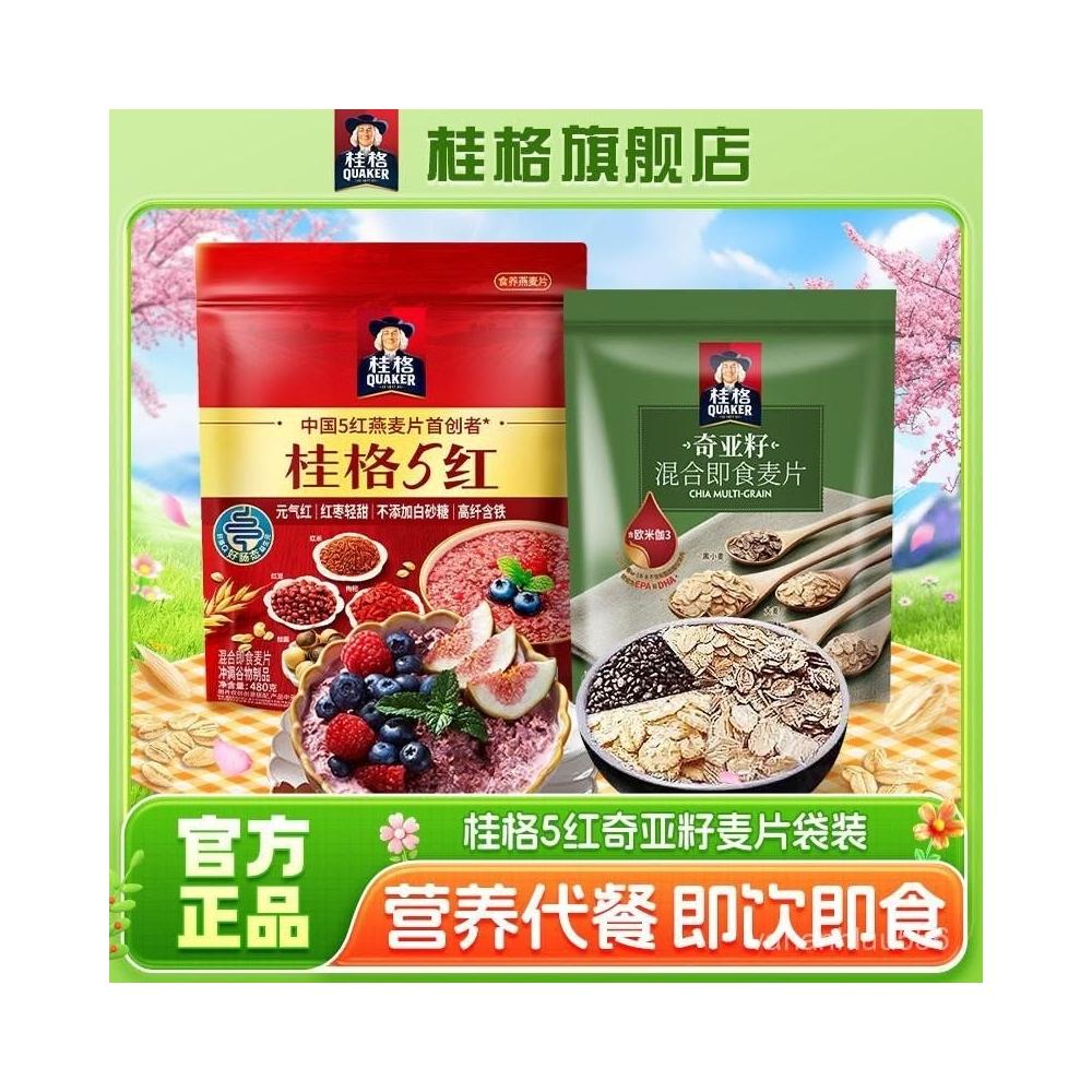 桂格五白/5紅/奇亞籽組閤裝卽食燕麥片營養衝飲早餐衝泡食品免煮