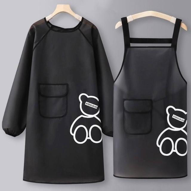 明明嚴選長袖圍裙防水防油罩衣網紅女家用廚房餐飲專用定製logo印字工作服