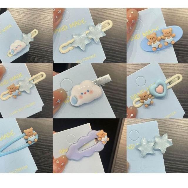 聰明甄選9.9~可愛雲朵髮夾女星星側邊劉海夾藍色小熊鴨嘴夾子髮卡頭飾