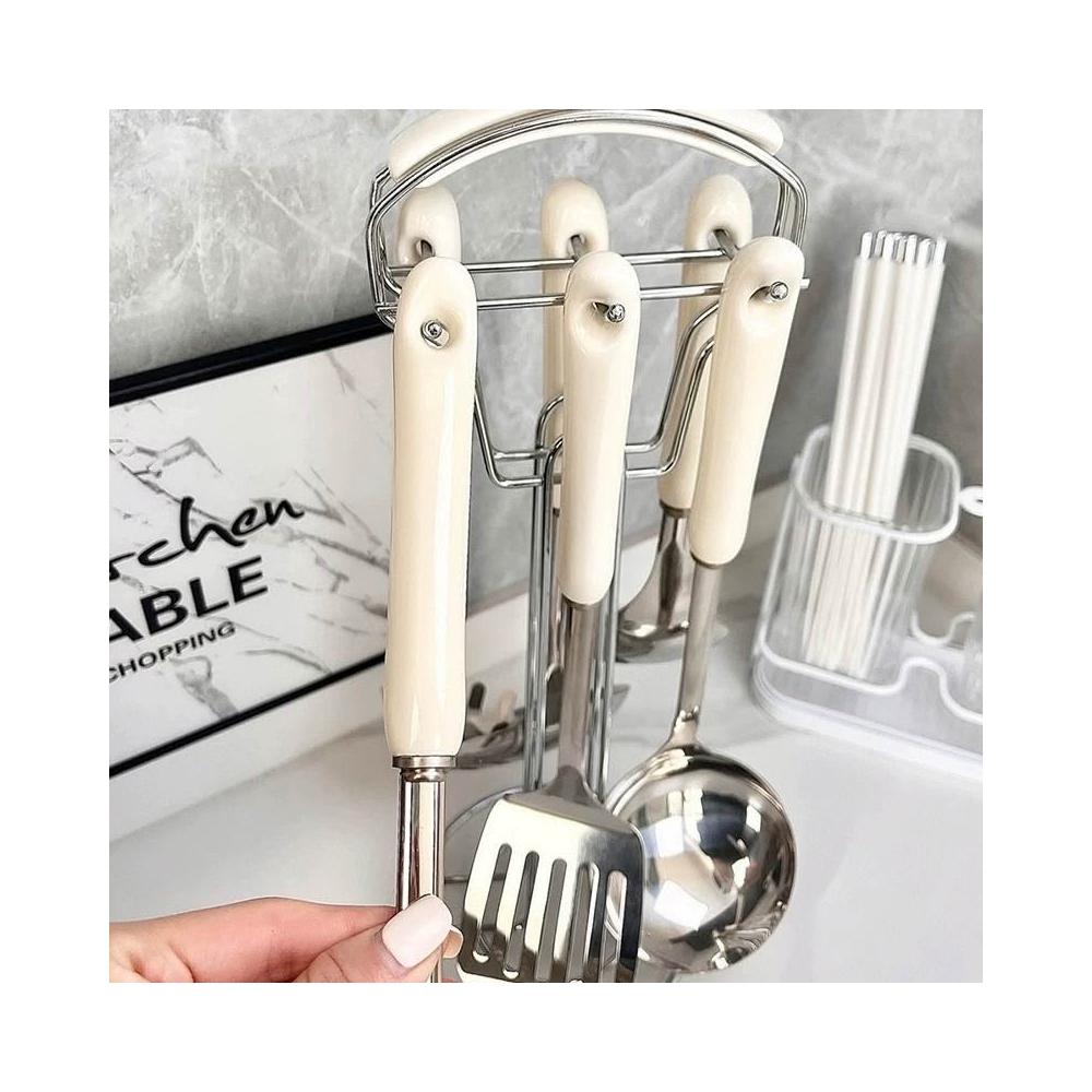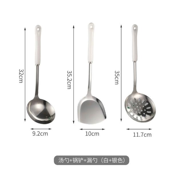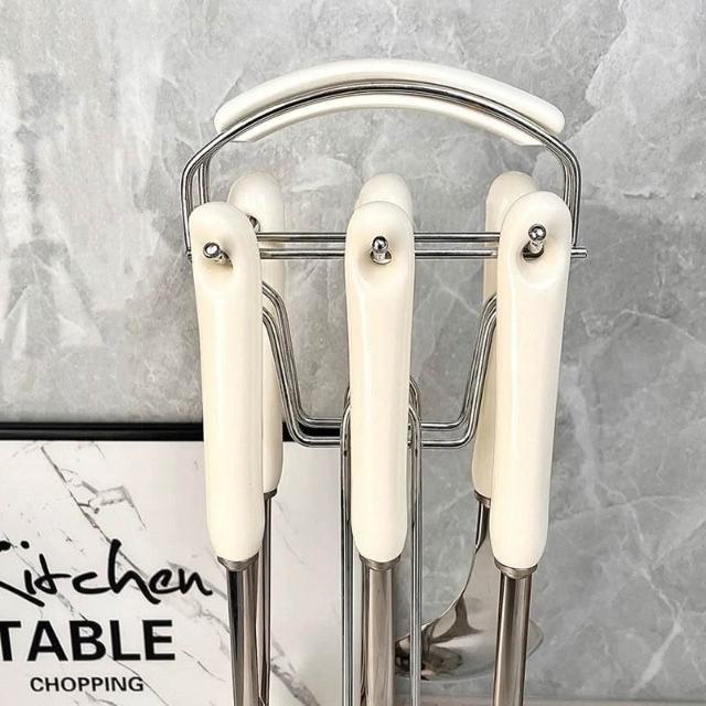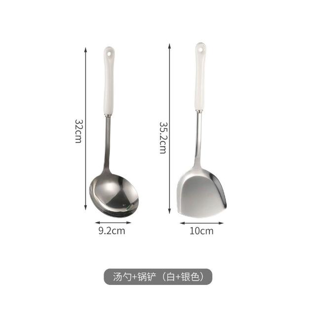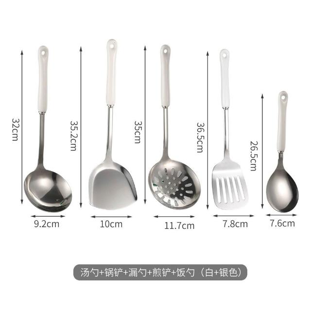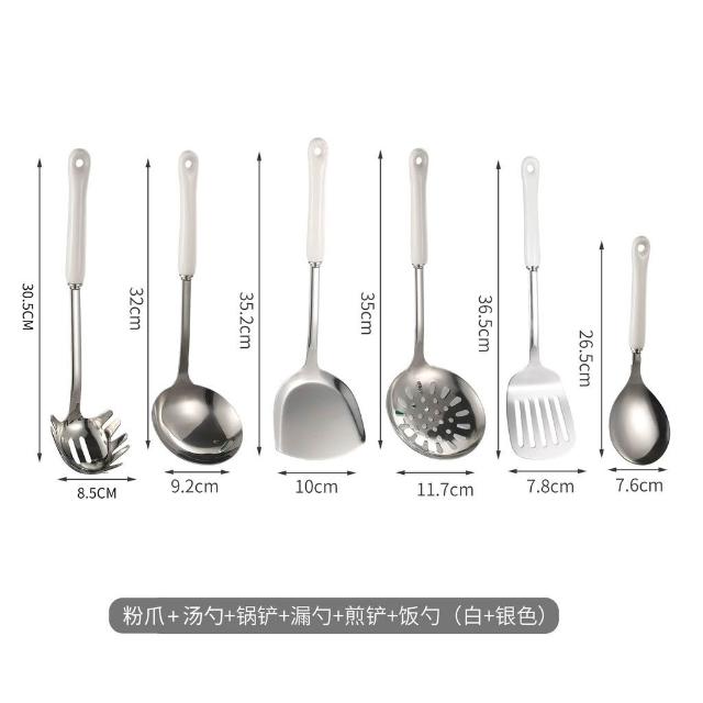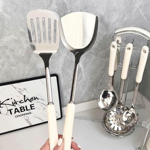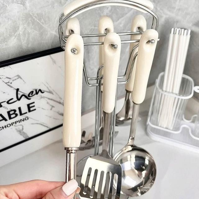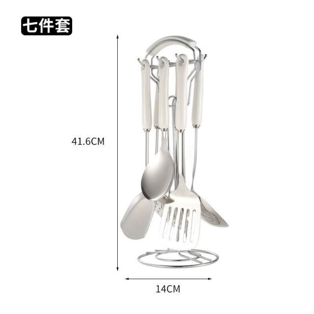 茂源優選不鏽鋼家用鍋鏟套裝廚房炒菜鏟勺廚具七件套勺子鏟子大湯勺置物架