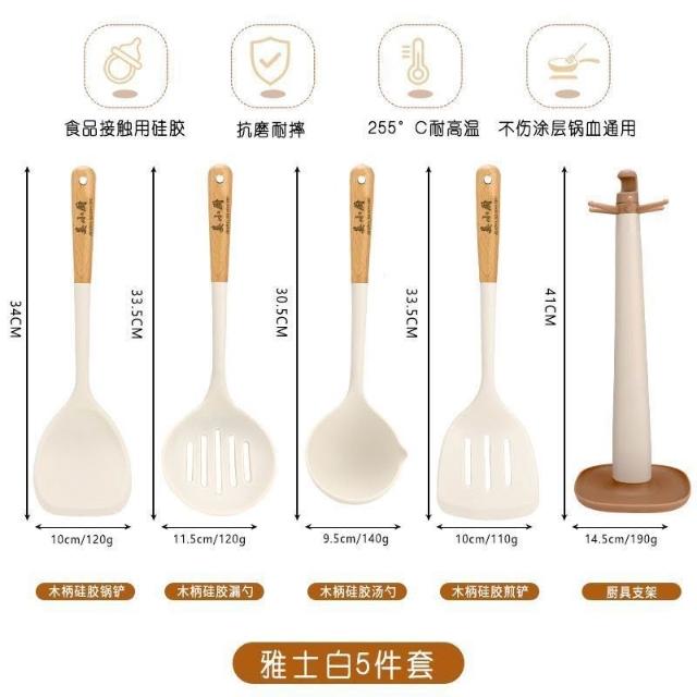 茂源優選全套家用廚具食品級不粘鍋專用鍋鏟硅膠湯漏勺耐高溫硅膠鏟勺套裝