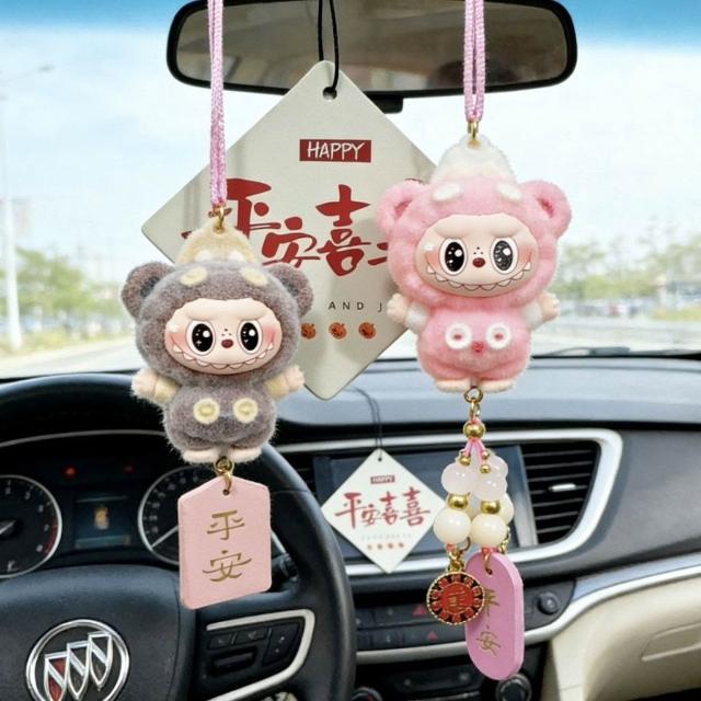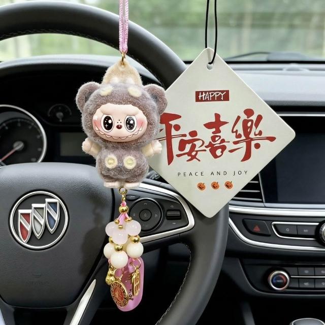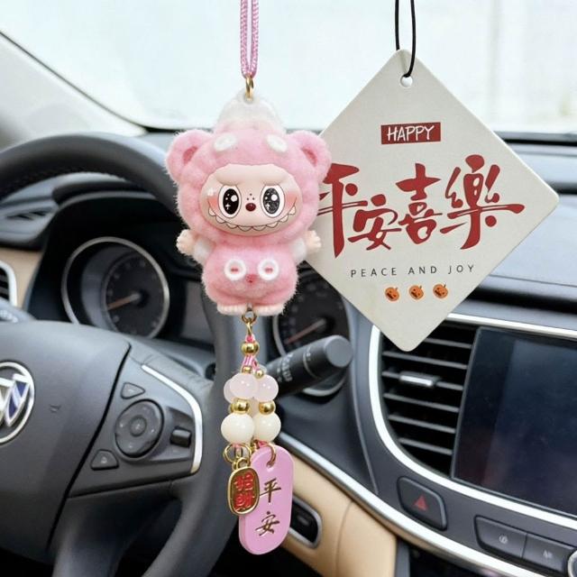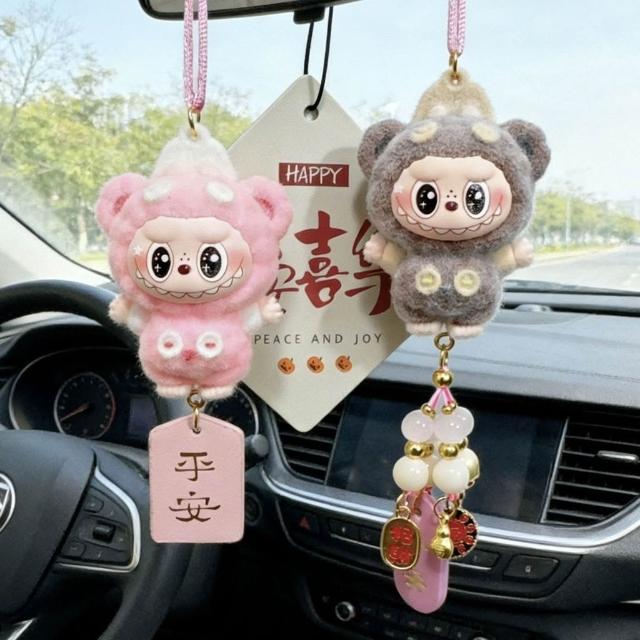 茂源優選Labubu-拉布布汽車掛件車載後視鏡裝飾車內吊飾可愛車飾禮物